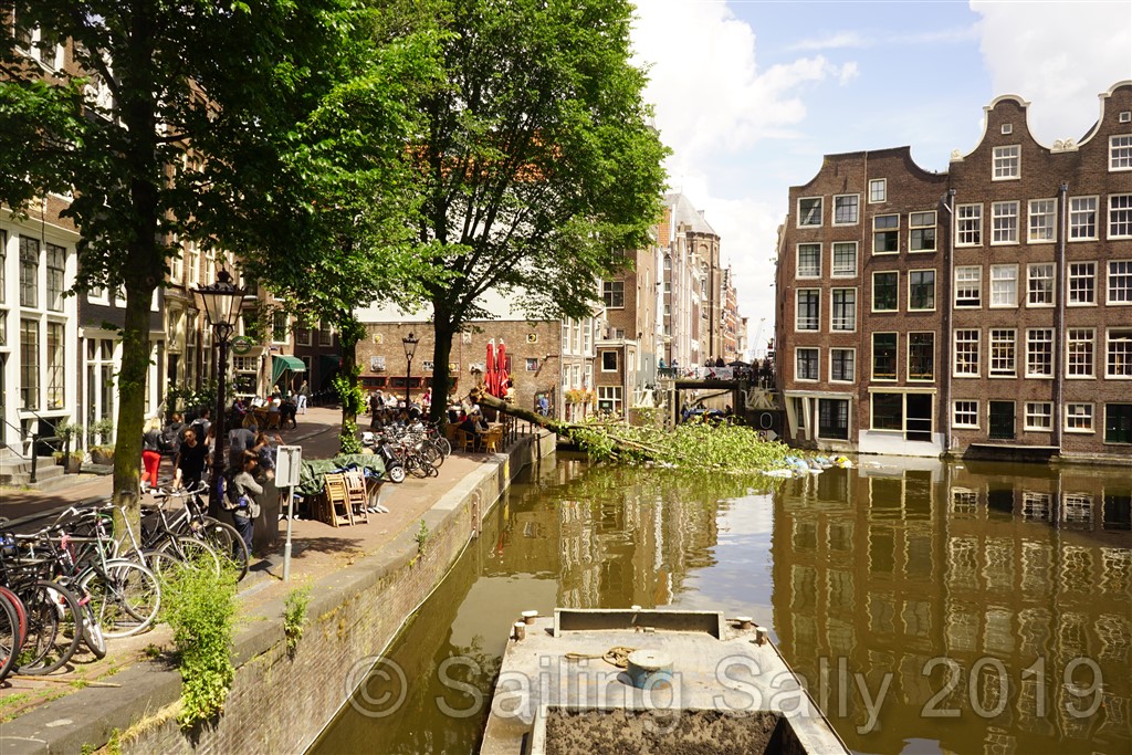 We had lunch in a cozy place by a canal, by the red parasols, but we wondered a little about the tree that had fallen into the canal.