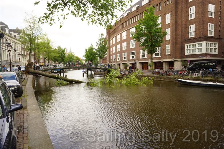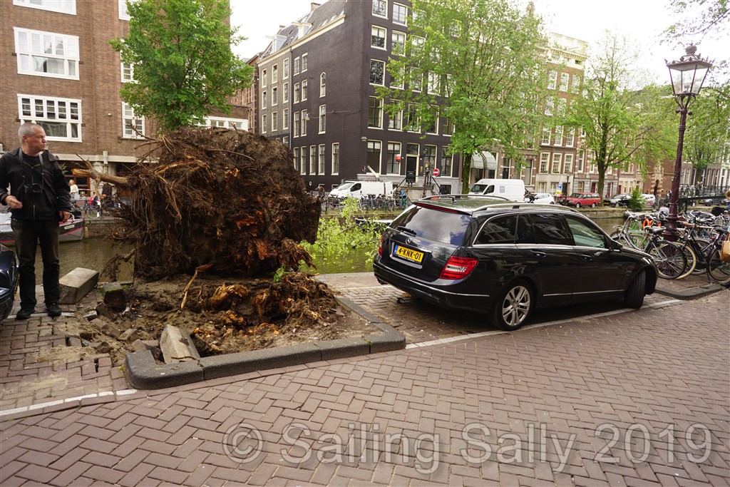 Soon one fallen tree after another appeared, and broken tiles on the ground. There had been a storm over Amsterdam the night before.