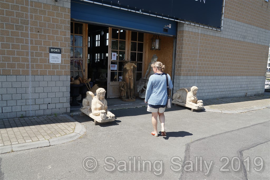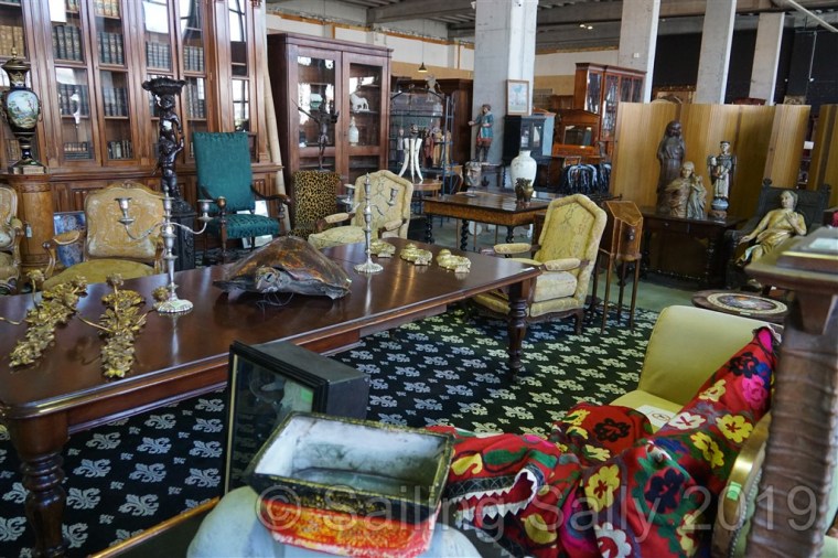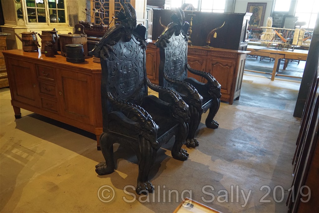 Men en fantastisk butik hittar vi, Paul de Grande, känd belgisk antikhandlare, har ett stort showroom på 1600 kvm i hamnen. Här finns det mesta, t.o.m. gamla öppnade parfymflaskor. Från väldigt välkända parfymhus förstås. Vi såg även ett par originella drakstolar, de skulle nog passa alla GoT-fans.