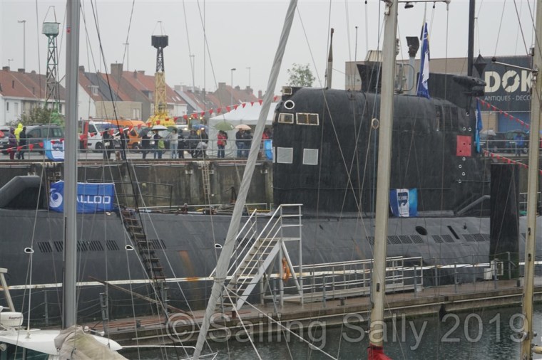 Nästa dag måste vi upp tidigt och lämna båten till 07.30. Längs en brygga nära oss ligger en rysk ubåt från 60-talet, och som varit en turistattraktion här de senaste 27 åren. Men med dåligt underhåll är den numera farlig att besöka och ska flyttas och senare skrotas. Det blir dagens händelse här i stan. Trots hällande regn vill många se på hur den svetsas loss och hur den, när högvattnet kommer, bogseras iväg.