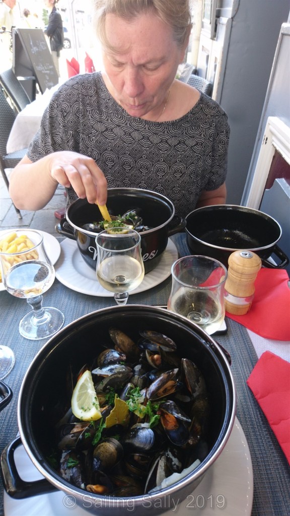 Eat delicious mussels again, this time with Roquefort cheese. I love trying new flavors, and they have so many varieties of their mussels here in Belgium and France. Have also eaten with coconut milk, lemongrass, and chili, it was yummy.