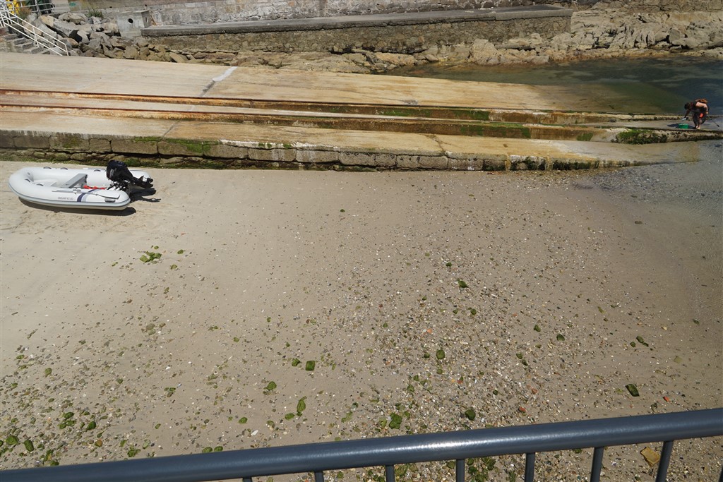 Sen är det dags att ta sig in till Corme och se vad byn har att bjuda på. Jollen dras lätt upp en liten bit på en strand inne i hamnen. Men det var lite tyngre att dra ner den när vi skulle hem 🙂 Detta tidvatten!