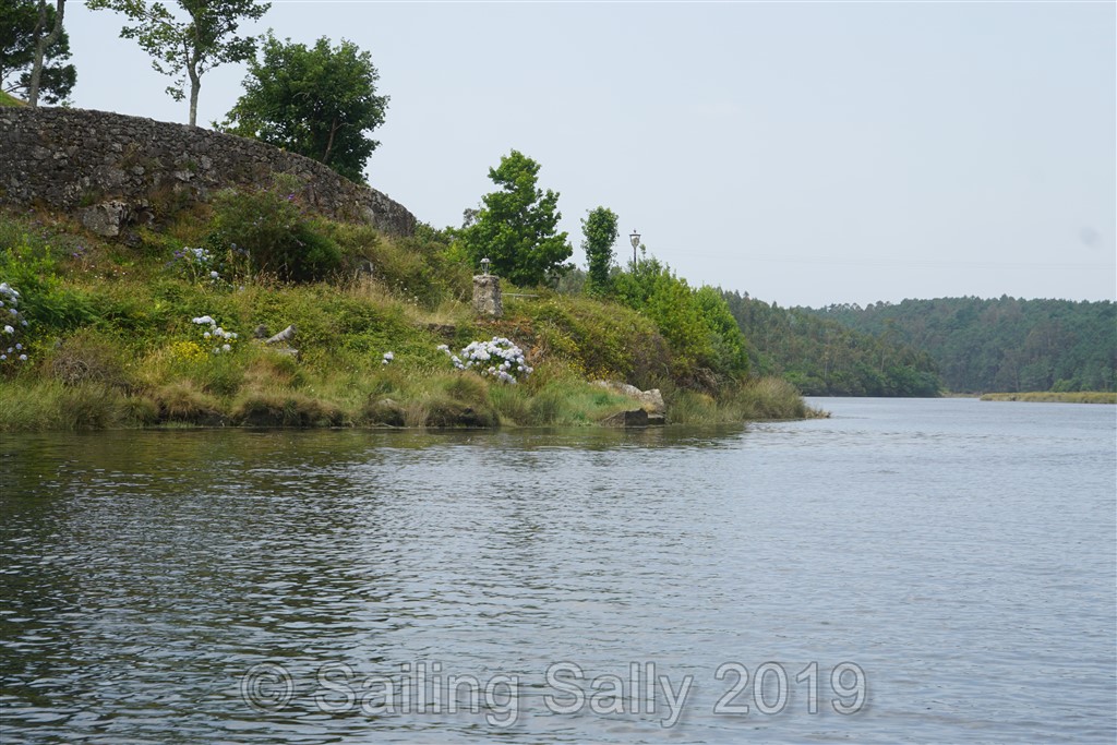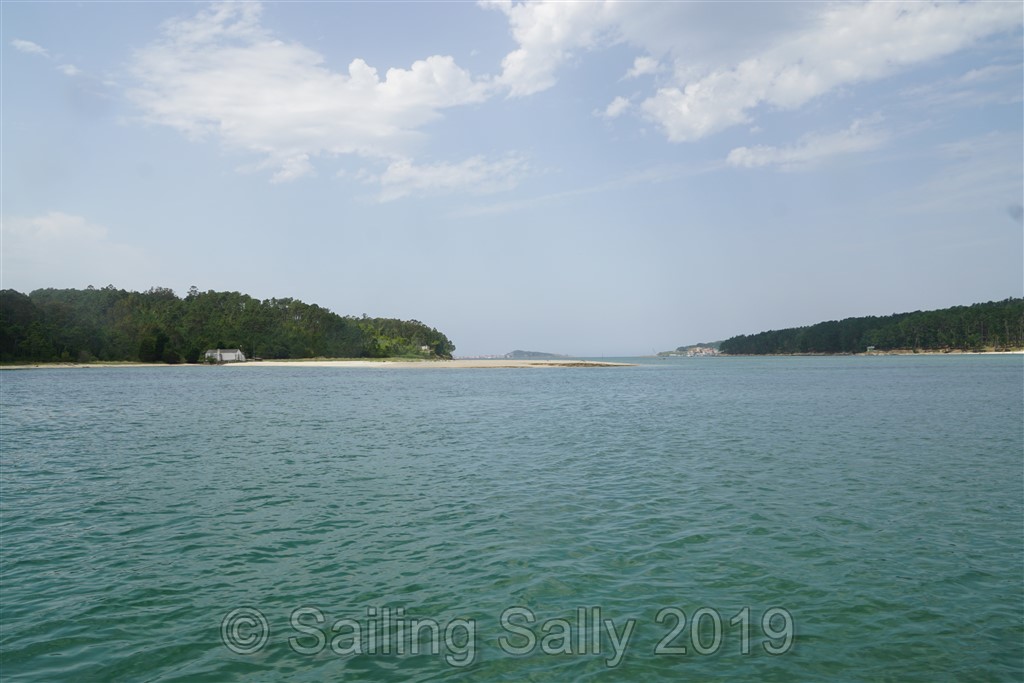Kusten är flikig med vikar som ger bra skydd. Inne i vikarna ligger det oftast flera små byar, och med den nu rådande stabila nordanvinden så söker vi oss mot byar på norrsidan för att få bästa lä. Första byn vi lägger till vid är Corme, där vi svaj-ankrar för första gången. Det är förstås Sally i bakgrunden.