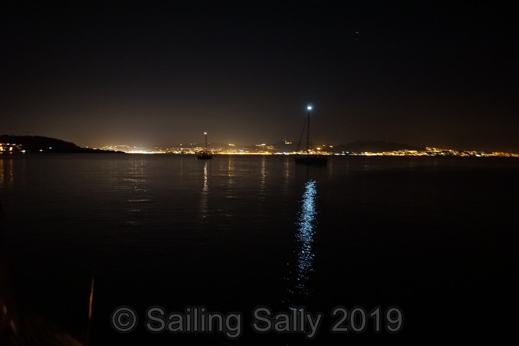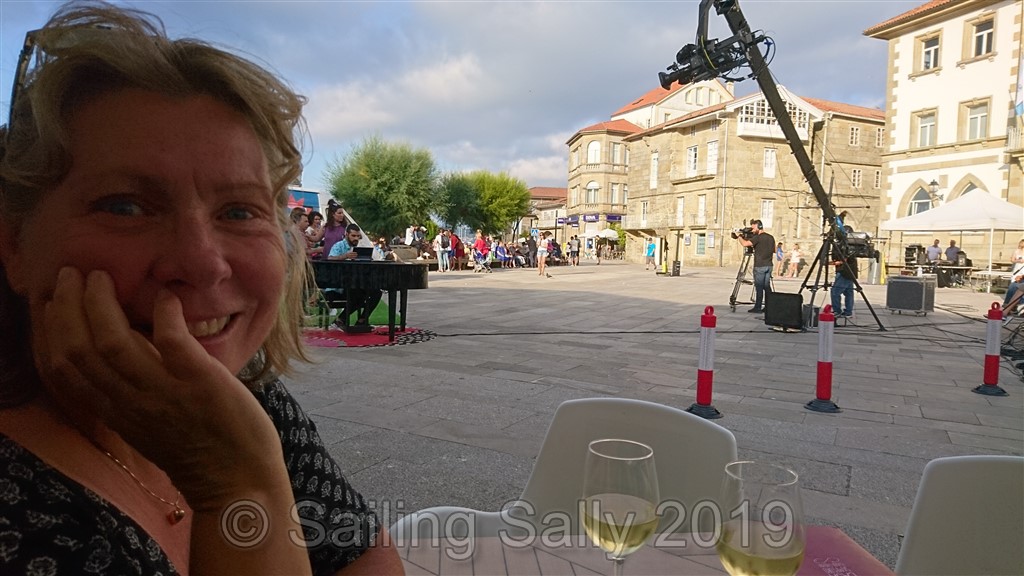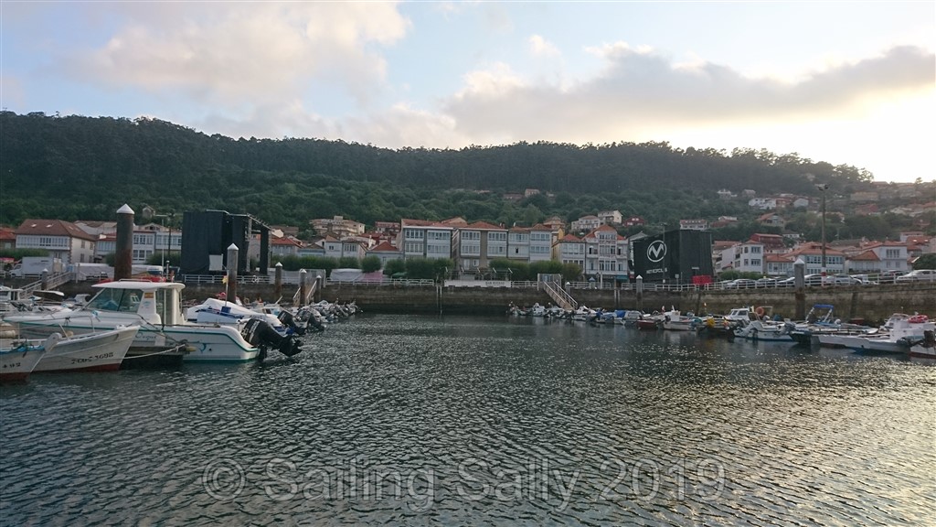 I Muros får vi däremot dubbelt upp av smällande. Spanien är världsledande på helgdagar och att fira sina helgon. Och nu var det dags för ”Virgin del Carmen” i dagarna tre, och om det märktes !!! Vid 22.30 första kvällen smäller de av 12 kanonskott som dånar mellan bergen, sen startar live-musik från två jättestora scener, som står mittemot varandra på hamnplanen. Vi gissar att det är två för att slippa ha tyst när de ändrar om mellan artisterna. Vid 5-tiden på morgonen lyckas jag somna in, trots musiken som fortfarande håller på.