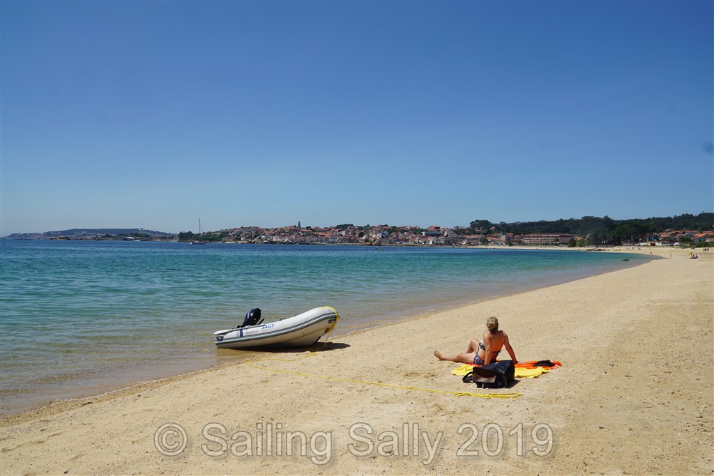 Efter tre nätter åker vi ut från denna Ria och in i nästa, Ria de Arousa. Här väljer vi att ankra utanför Palmeira och en underbara sandstrand.