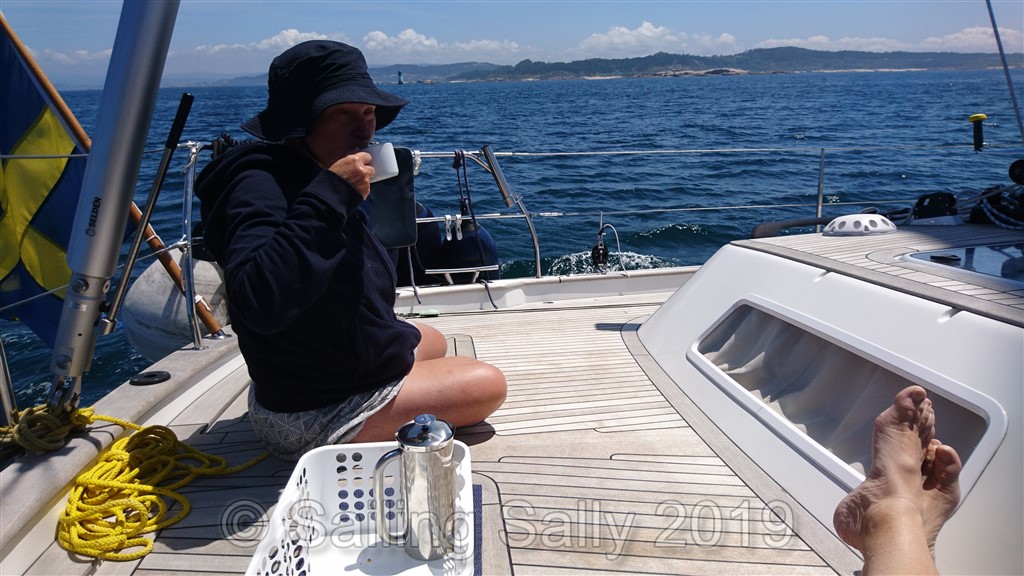 Jonas tar det lugnt medans jag har full kontroll. Sen gemensam fika på akterdäck och GOTO: som strävsamt hänger efter