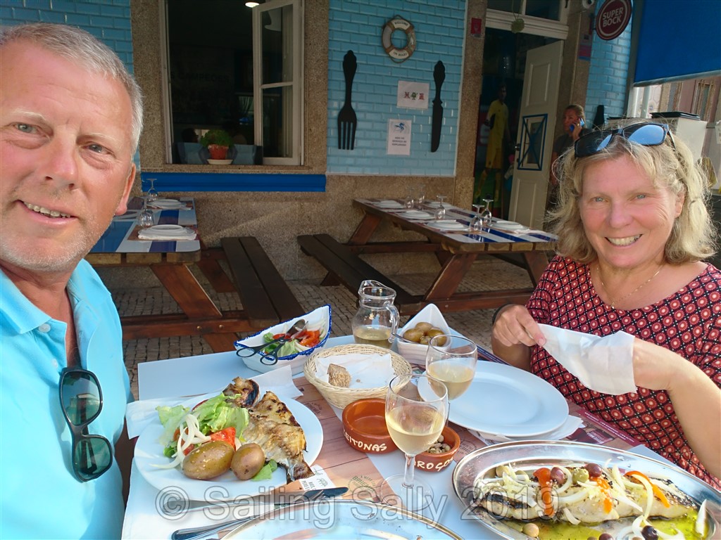 Vi fick även prova på hur det är när dyning från oväder långt bort når oss. Det var just ingen vind alls där vi låg, men däremot en dyning på 3-4 m som drog in i flodmynningen och in i marinan. Båten for som en vante från sida till sida, framåt och bakåt. Så sent på kvällen i mörker kände vi oss till slut tvungna att gå ut och förtöja upp båten kors och tvärs åt alla håll för att hålla henne så lugn som möjligt och för att inte slita för hårt på bara en tamp. Våra fendrar trycktes nästan helt ihop och vi funderade på hur länge de skulle hålla innan de sprängdes. Bryggorna låg åtminstone stilla vilket de enligt vår Portugisiske båtgranne inte gör när vinterstormarna passerar ute på Atlanten. Den här gången gick allt bra och det var en nyttig påminnelse för oss att även tänka på hur dyning påverkar en hamn vid ett stort hav. Vi har skrivit ett särskilt blog-inlägg Swell in Porto om hur dyningen påverkade förtöjningen och hur vi till sist förtöjde båten.