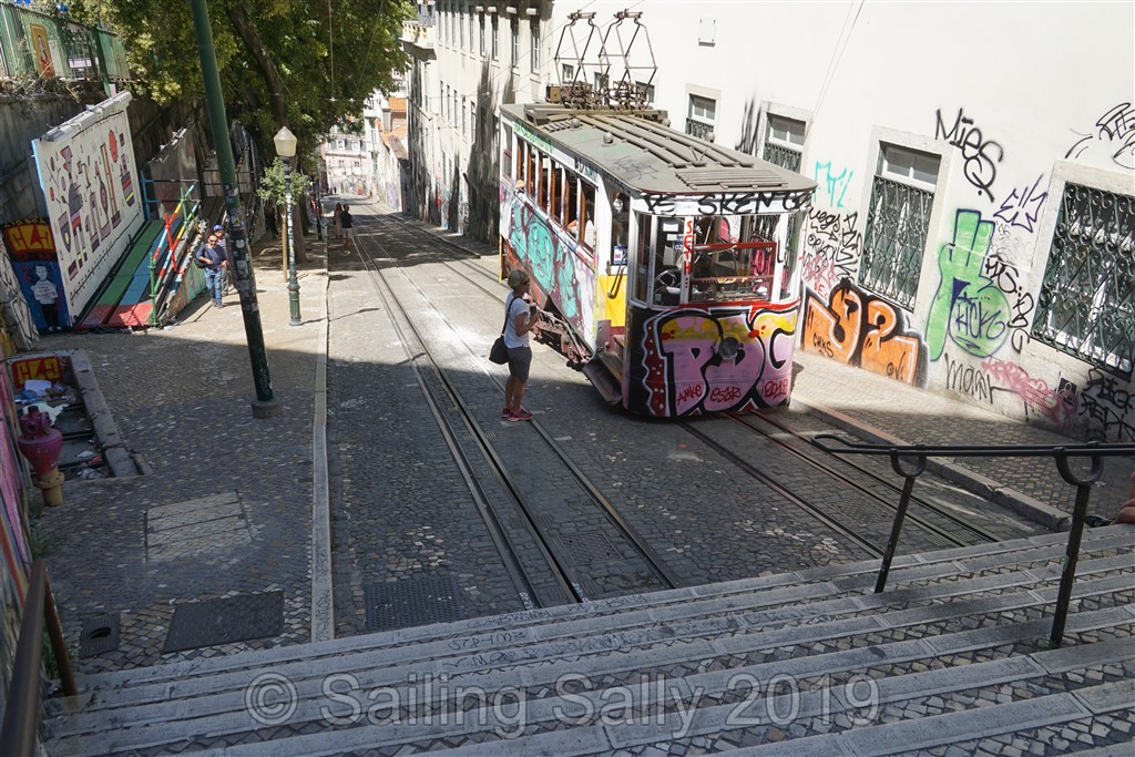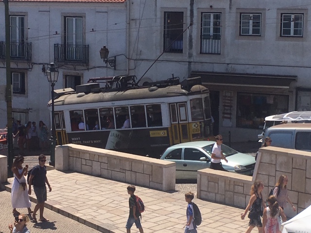 Vi åker med spårvagn 28 upp och nerför kullarna och genom trånga gator, ett måste för varje turist.