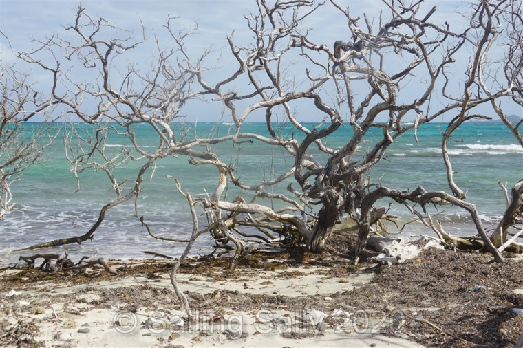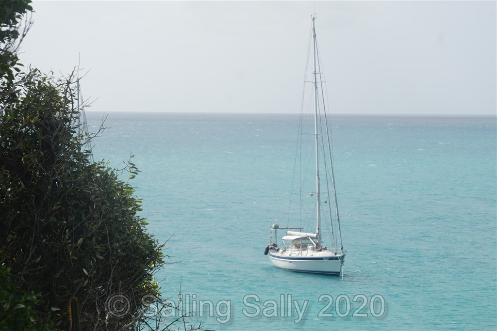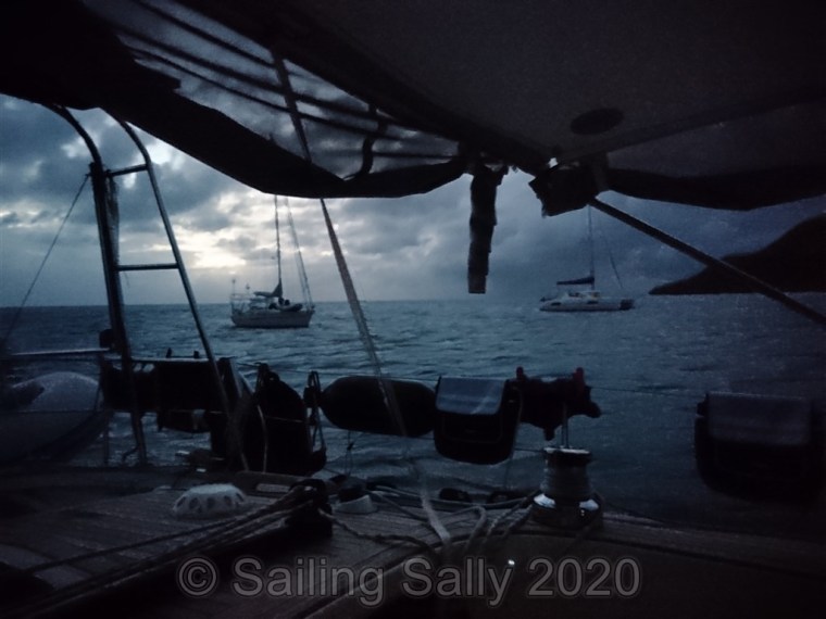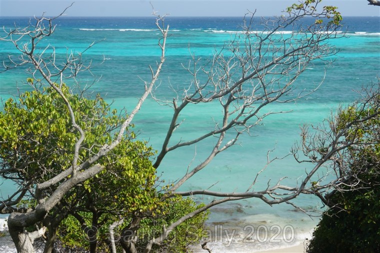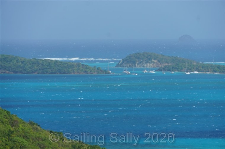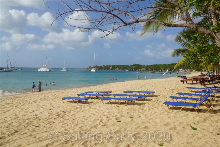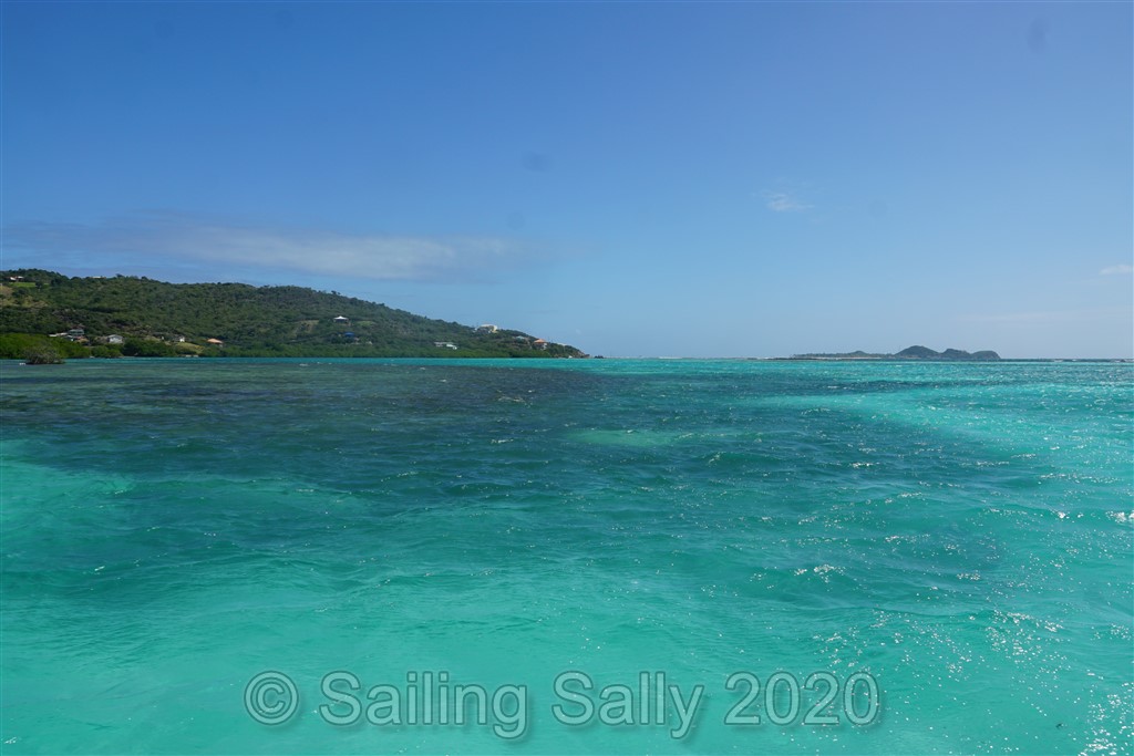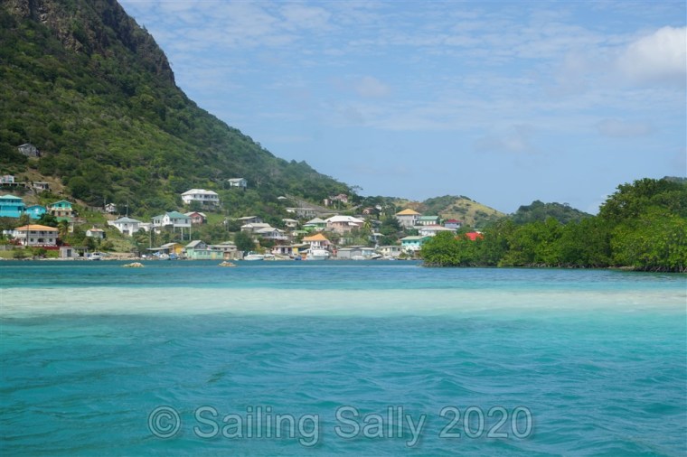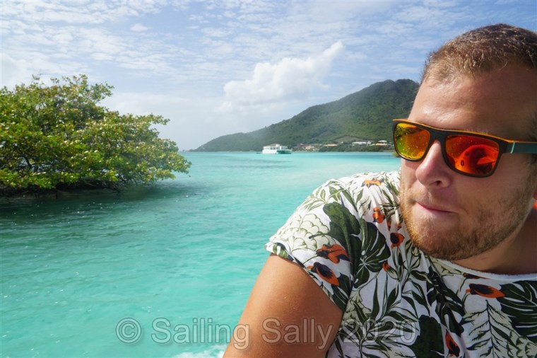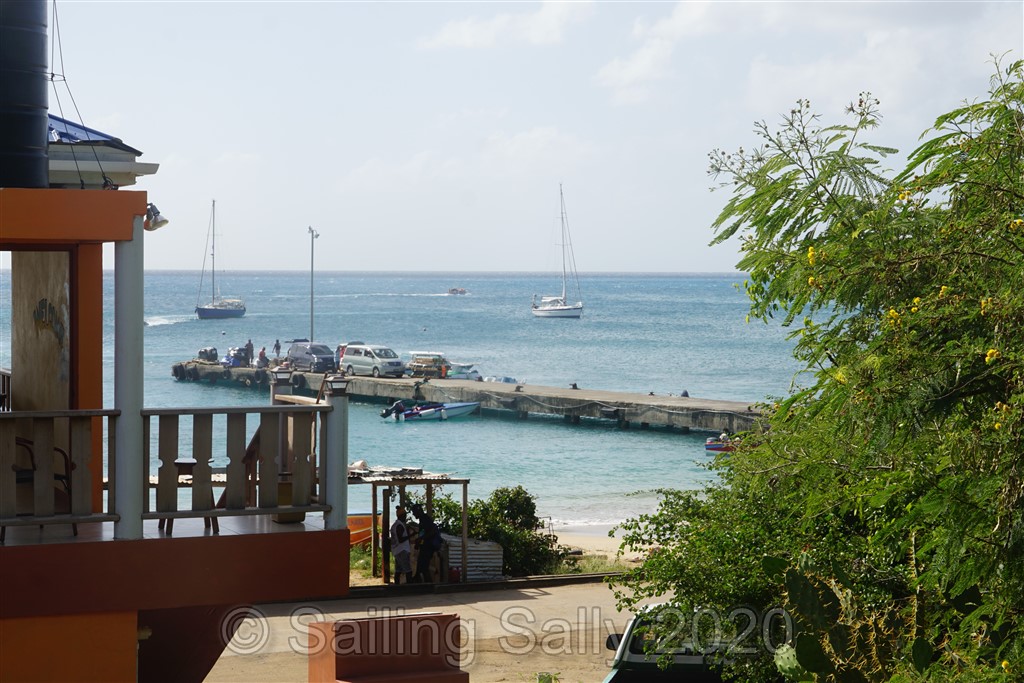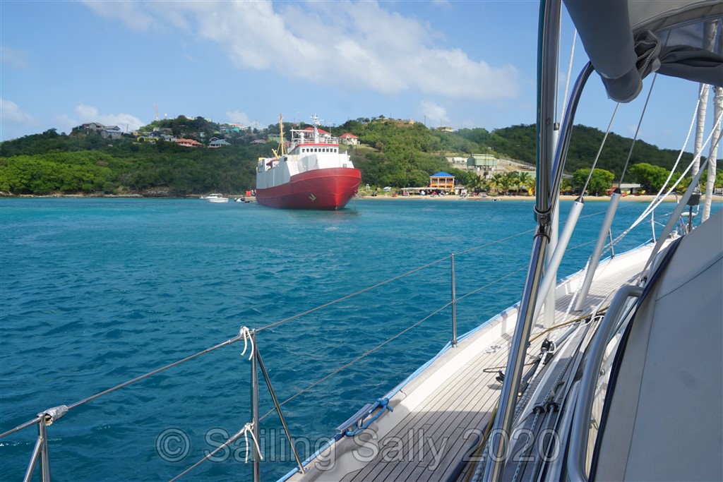 Efter Tobago Cays seglade vi till Mayreau och ankrade i Saline Bay. Första ankarplatsen vi valde visade sig ligga väl nära hamnen och det blev en spännande första kväll när färjan kom och skulle leta sig in mellan alla ankrade båtar. Vi såg sökljuset lysa upp båtarna utanför oss för att hitta en väg in till hamnen och en plats att vända på. Under backmanövern in mot bryggan släpper de ner ankaret och det hamnar väldigt nära vårt ankare, så nästa dag flyttade vi bort från lastkajen.