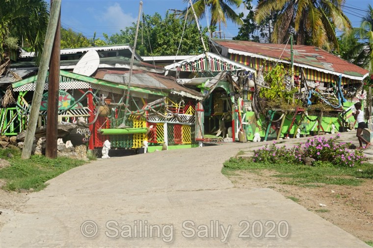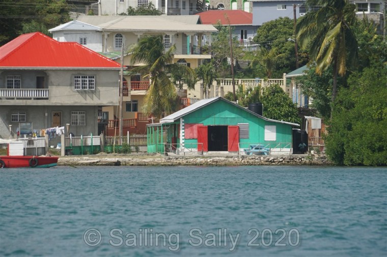 Hamnarna på de Karibiska öarna består ofta bara av en betongbrygga rakt ut från stranden. Lastbåtarna backar in och lägger till med aktern mot bryggan med ett ankare från fören som håller ut båten.