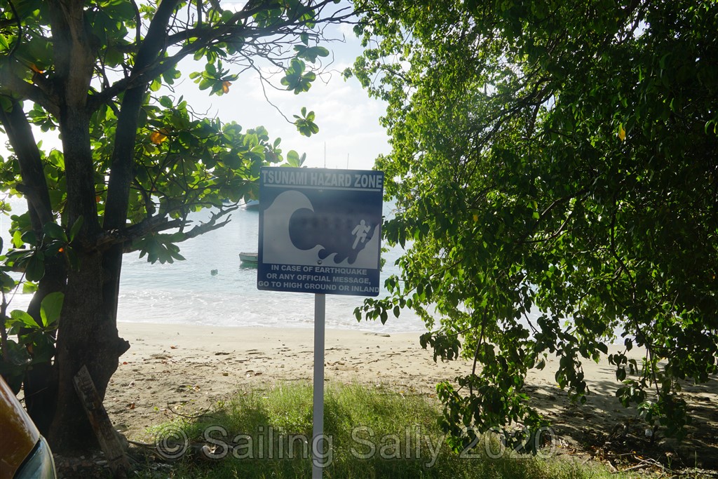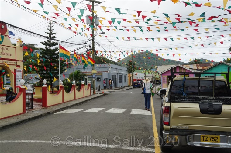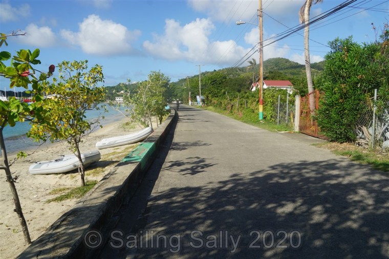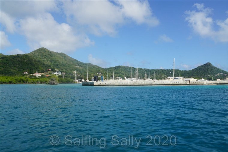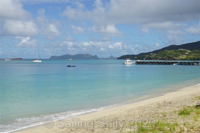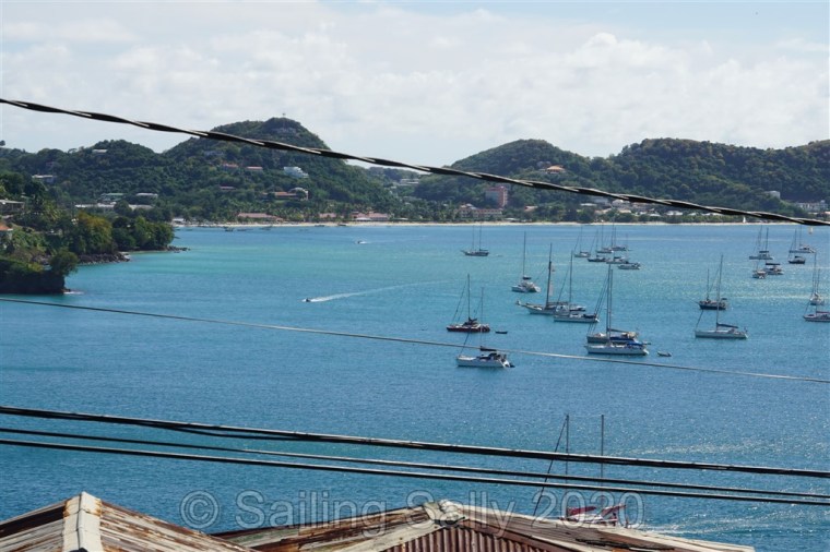 Vi checkade in till Grenada i Tyrell Bay på ön Cariacou som ligger strax söder om Union Island. Incheckning görs vid varvet i södra änden av viken, här finns sjömack och en liten restaurang och det är fullt med båtar på varvet. I norra änden av viken finns början till ett varv och en marina, men bygget av bryggor och servicebyggnader verkar ha avstannat. Det ligger några större båtar vid bryggorna och det pågår lite arbete på några båtar på land, men det är allt.