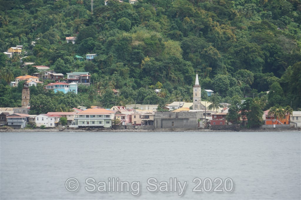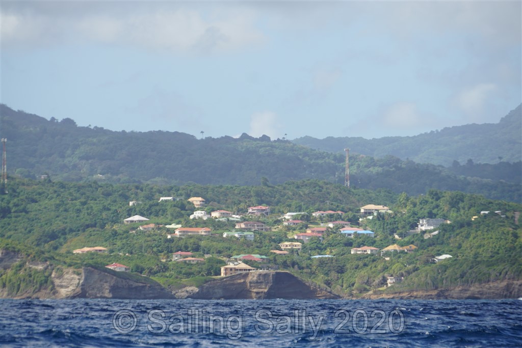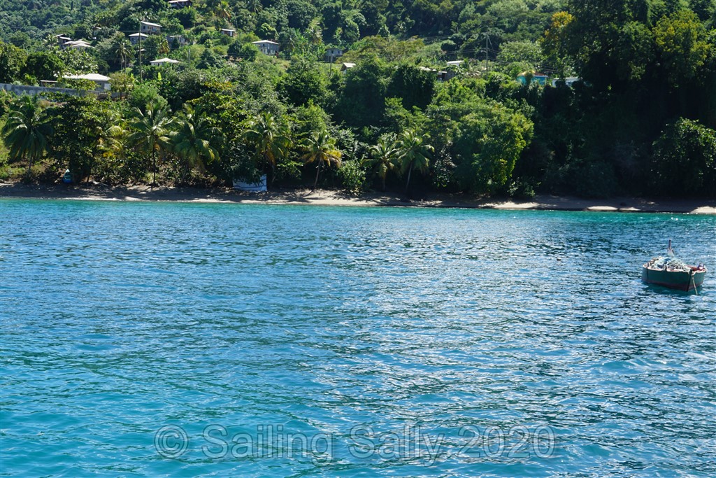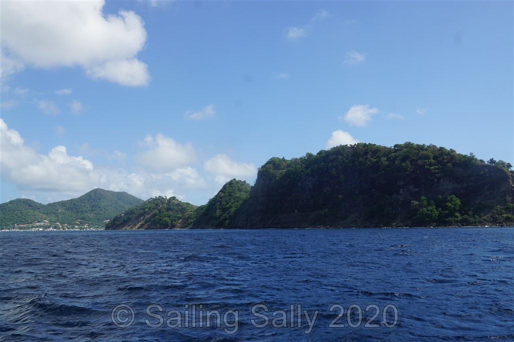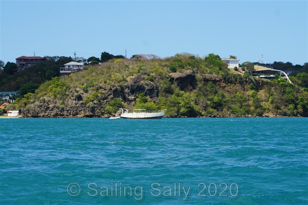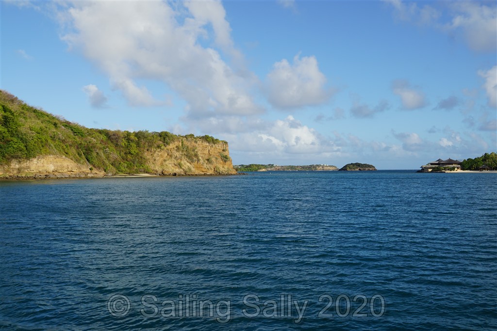 Nästa dag fortsatte vi seglingen till ön Grenada. Vi valde att segla på Atlantsidan för att få bra vind och framåt eftermiddan ankrade i Woburn Bay, en av de fjordliknande vikarna på södra änden av ön. Det fanns flera skyddade platser i viken, men den var rätt tråkig att ligga i. De flesta båtar verkar vara obebodda och det finns inga restauranger eller annat att åka till på stränderna i viken. Vi hade fin utsikt mot Calvingly Island, en privat ö med en resort på.