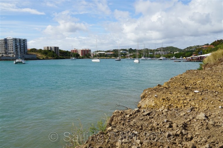 Efter ett tag flyttar vi till nästa vik som är Prickley Bay. Längst in i den viken finns en välsorterad marinbutik (Budget Marine) och en restaurang (Sails) med superbra wifi och god mat. Här träffar vi en Australiensisk fiskare som avverkar sin bucket-list under sin semester. Det var väl det bästa med den här viken. Vi gick även en sväng till Blue Bay som skulle vara fin enligt guideboken. Tyvärr pågick det ett flertal byggprojekt vilket förstörde vyerna. Det gick inte att komma ner till vattnet utan att gå in på de hotell som hade tomterna vid vattnet.