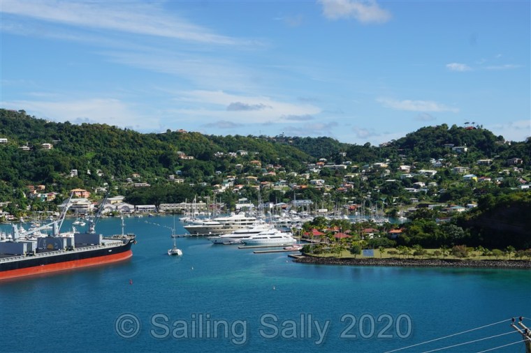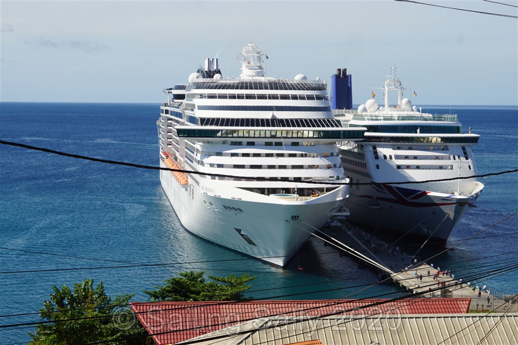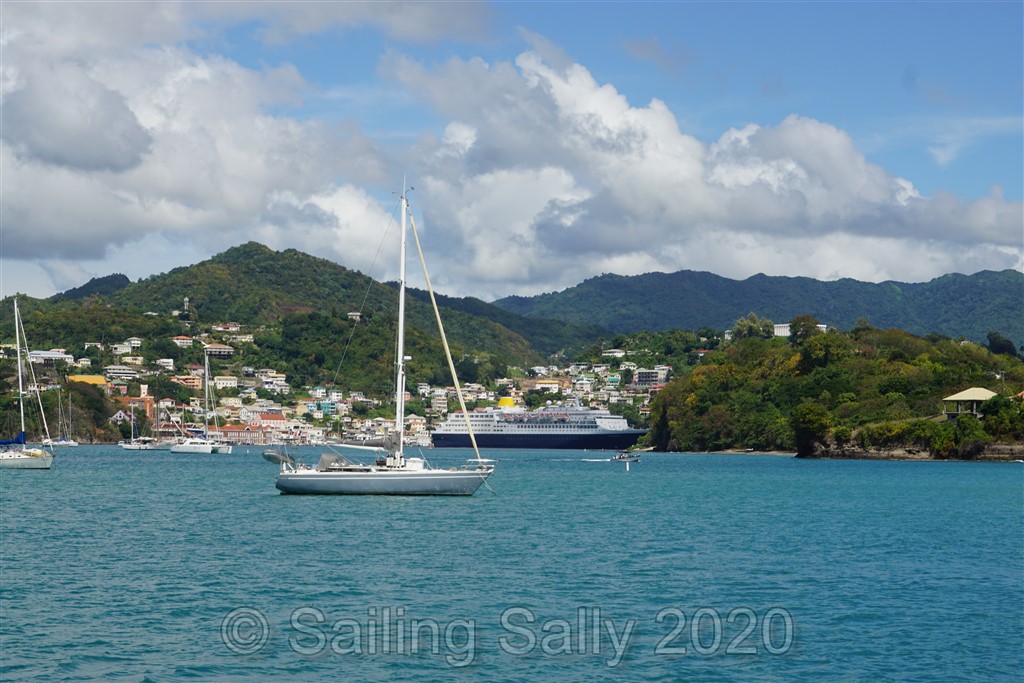 St George verkar vara ett populärt mål för kryssningsfartygen. De dagar vi är här ligger det alltid två stora fartyg vid den yttre hamnen och ett mindre kryssningsfartyg inne i St George. På förmiddan kör taxibåtar i skytteltrafik från kryssningsfartygen till bryggan i Grand Anse Bay. Några timmar senare går trafiken åt andra hållet när alla ska tillbaka kryssningsfartygen.