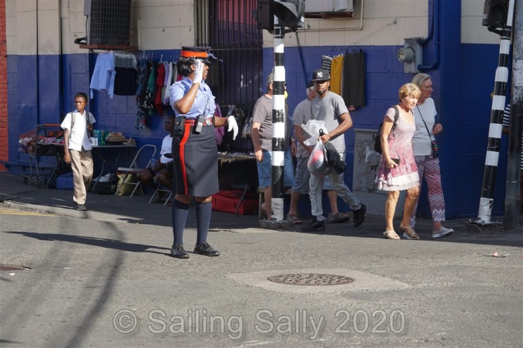 Till sist hamnar vi på en matmarknad där han vill fixa en god lunch till mig. Jag säger att jag gärna vill välja min mat själv, han säger att han har speciella kontakter. Till sist ger han sig och jag beställer min mat. När jag ätit klart och ska betala säger han att han redan har fixat det och kan betala honom när vi skiljs åt. Till sist kommer vi till en butik som säljer choklad tillverkad på Grenada där jag går in och ska handla. Nu har han varit med mig i ungefär 2 tim, och jag säger åter igen att jag inte behöver någon guide och vill betala maten. OK säger han, och vill ha 200 EC (ungefär 700 SEK) betalt för maten och för att han guidat mig i 2 tim. Jag säger vi aldrig kommit överens om att guidningen skulle kosta något. Jag ber om kvitto på maten, men det har han inget, utan säger att den kostade 60 EC vilket är väldigt dyrt för den mat jag beställde, högst 30 EC brukar en sån lunch kosta. Han fortsätter tjata om betalning och till sist får han 50 EC för att jag ska bli av med honom, man vet aldrig vilka vänner han kan ha. Han accepterar motvilligt och går sin väg. Jag har blivit en erfarenhet rikare och nästa gång jag hamnar i en sån här situation ska jag vara tydligare från början.
