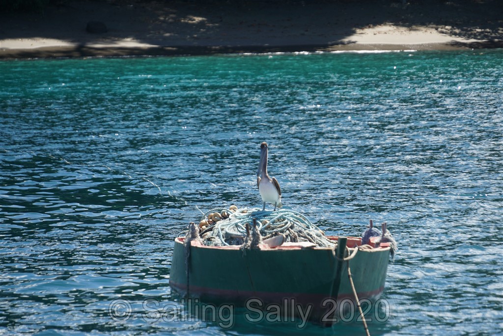 Nästa dag går vi motor upp till Moliniere Point där vi lägger oss vid en av de bojar som finns i viken. Fint liten vik med klart vatten och pelikaner vid stranden.