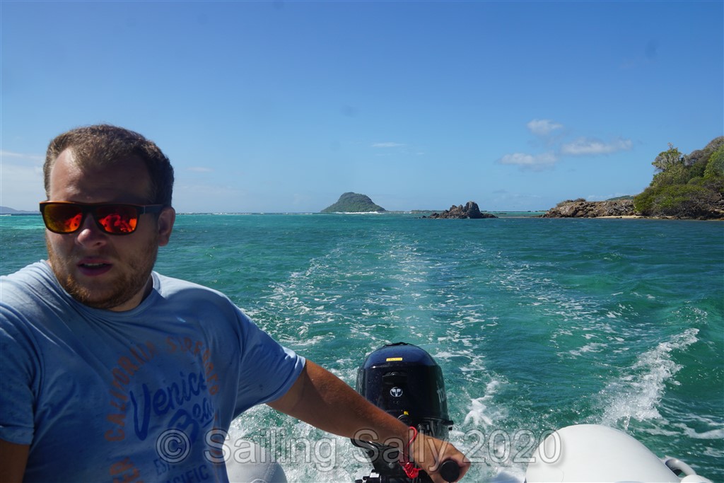After a few days at Anse a l’Ane, the new crew has grown accustomed to life aboard and we venture on a short sailing down to the Grand Anse-d’Arlet where we anchor at the northern end of the bay. Johan O who likes to fish can even launch our fishing tackle, but without any bite. Here we get several nice days with sun, swimming, snorkeling and some excursions to the beach. We have not yet received any reports of corona cases here at Martinique, so life is as usual.