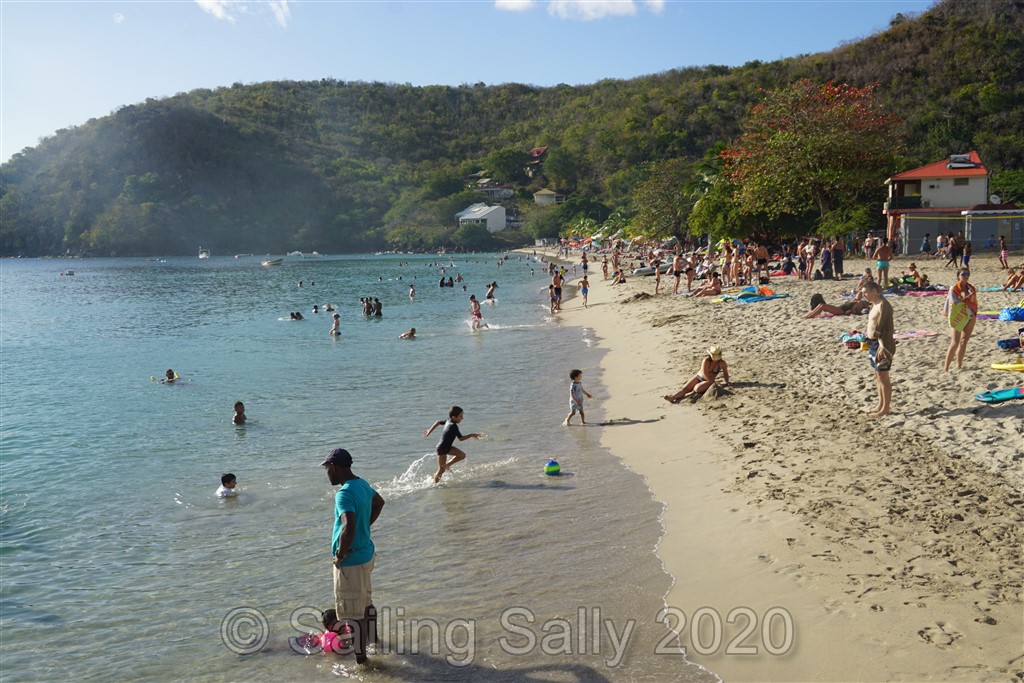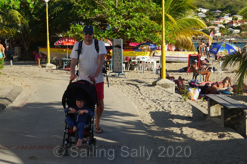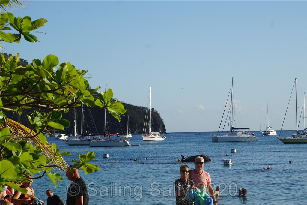 The next day we make a short sail to Anse a l’Ane where we anchor in the bay. Johan takes the dinghy ashore with the new crew members to enjoy ice cream and to bathe from a sandy beach. We had thought of taking the dinghy down to the fine snorkeling at Ilet Ramiere and to the cave with bats. Unfortunately, it is a bit too windy to make the visit to the cave and then we also ignore the snorkeling.