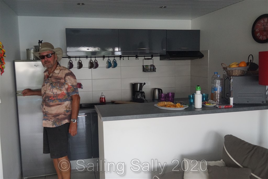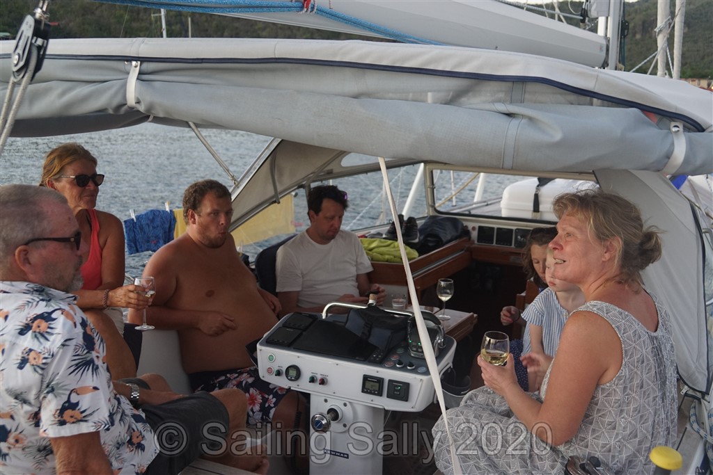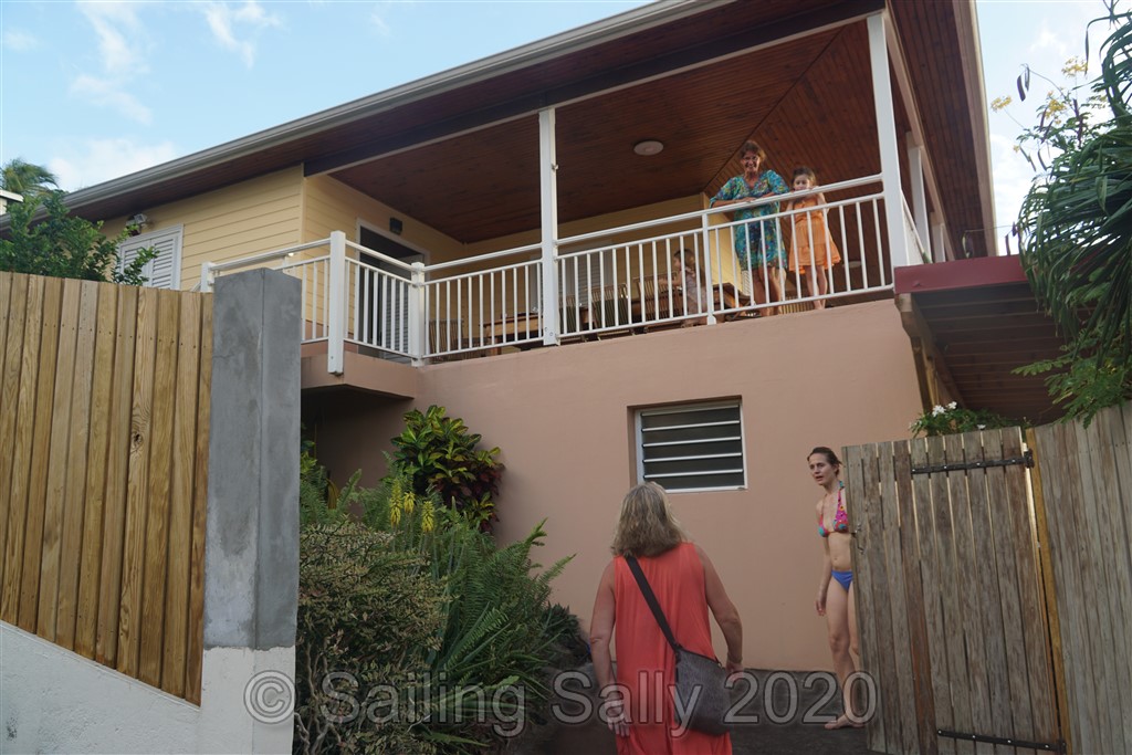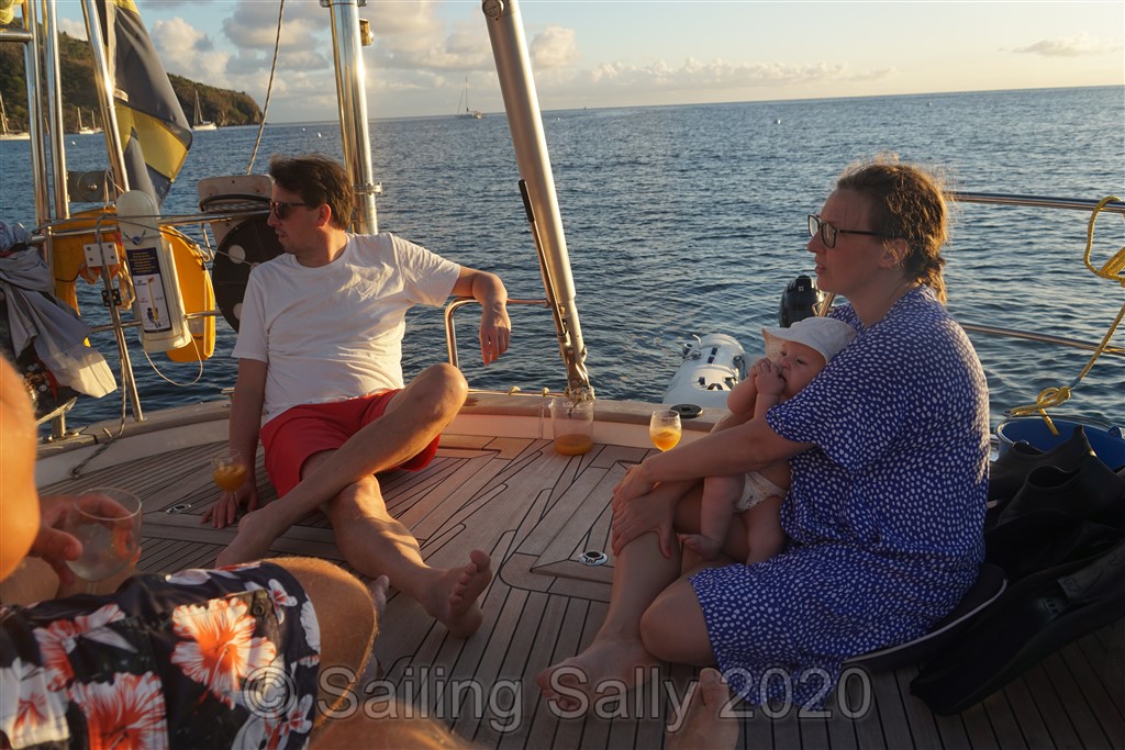 Flying Penguin with Mirja and Håkan aboard has also anchored here. They are to be visited by their children and grandchildren and they are so many that they cannot fit onboard the boat so they have rented a house here in Petit Anse d’Arlet. Carina and I take a sundowner with them in the house which is located on the slope with a lovely view over the bay and all the anchored boats.