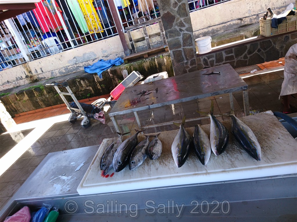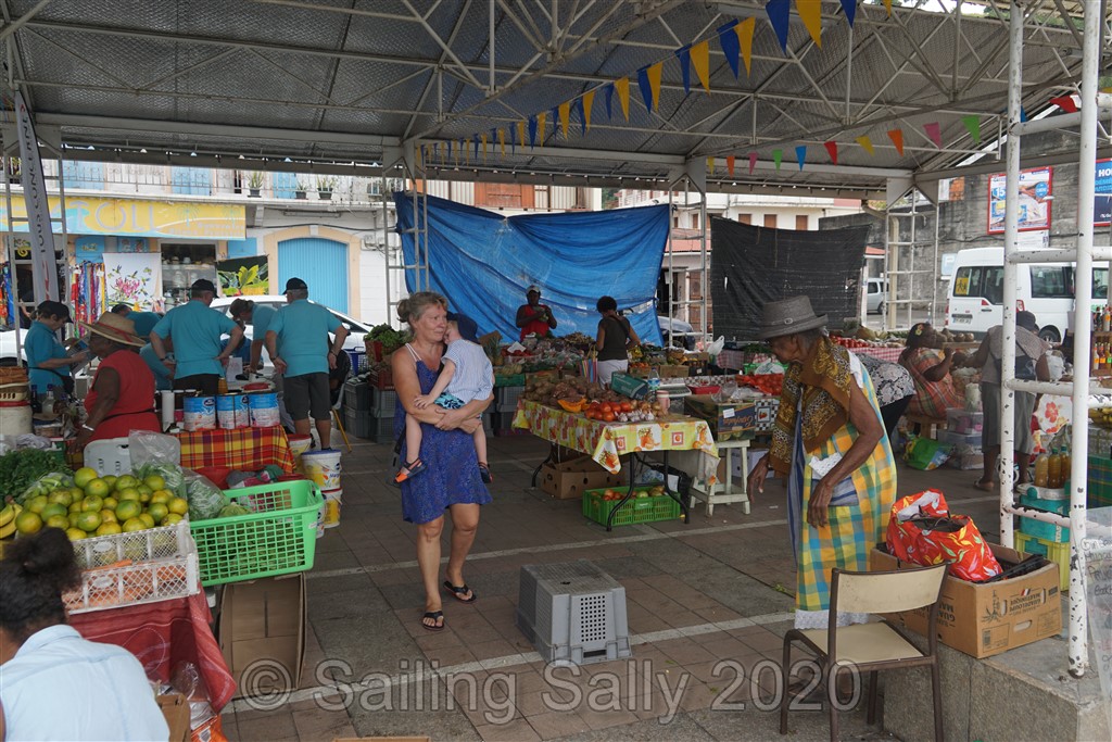 Macrons tal till det Franska folket är 10 dagar bort när vi kommer till St Pierre. Även om ingen officiellt har pratat om stängda gränser och utegångsförbud, så har vi ändå känslan av att det kan bli stora förändringar ganska snart, dock inte med så mycket stängda gränser som det blev. Det innebär att vi så fort vi får möjlighet, handlar vi mat eller tankar diesel till båten. Vi har hört att det kallas Kuba-metoden. Vi börjar även tänka på att andra människor kan vara smittade och vi håller lite mer distans till andra än vanligt vilket inte alltid är så lätt, som här på marknaden i St Pierre där vi köpte grönsaker.