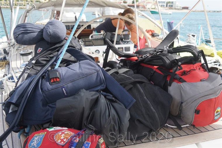 Sofia och Johan packar sina grejjer och vi hinner med en lunch innan det är dags för dem att åka till flygplasen. Vi känner oss både glada och ledsna på samma gång. Glada för att de äntligen kommer hem och ledsna då vi kommer att sakna dem ombord. Jag tror de känner på samma sätt. Jag behöver göra 2 vändor till Police dock med jollen för att transportera hela familjen med packning dit. Där blir de hämtade av en förbeställd taxi som tar dem till flygplatsen. Det är fler seglare som ska med samma plan, det står 6-7 bilar och väntar på passagerare till evakueringsflyget.