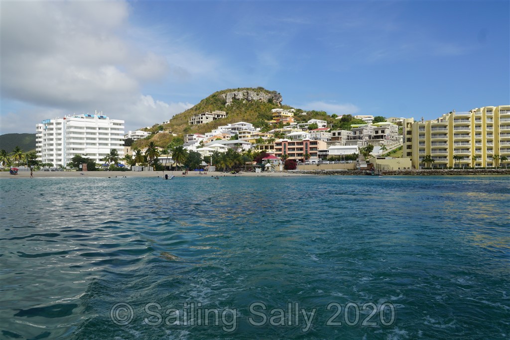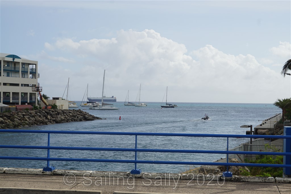 Vi kommer fram till Simpsons Bay tidigt på morgonen och hittar en ankarplats utanför stranden i den södra delen. Därifrån är det nära att ta jollen in till Police dock vid Simpson Bay Bridge. Jag ska träffa vår agent där för att lämna pass och andra handlingar som behövs vid inklareringen på Sint-Maarten.