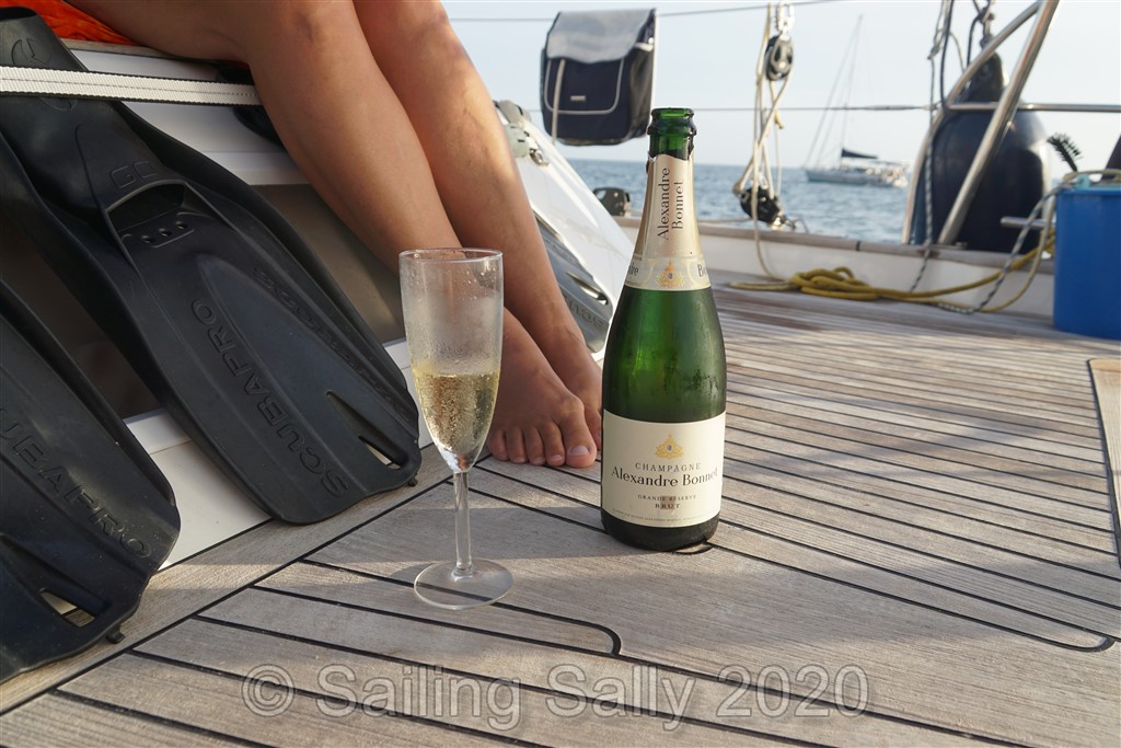 Vi läser, lagar äppelpaj, förgyller sundownern med champange, tittar på väderprognoser för att se hur vädret utvecklas på Atlanten om vi skulle tvingas att segla till Europa. Vi håller oss uppdaterade på möjligheterna att lägga upp båten på Grenada om Trinidad inte öppnar sin gräns i tid. Medan vi är här blir det möjligt att bli insläppt på Grenada om man ska förvara sin båt där. Vi bokar en uppläggningsplats på Clarks Court Boatyard and Marina. Skönt, nu vet vi att vi inte behöver segla till Europa. USA är stängt för oss eftersom vi inte har visum dit och det går inte att skaffa nu då de inte ger ut nya sen slutet av April.