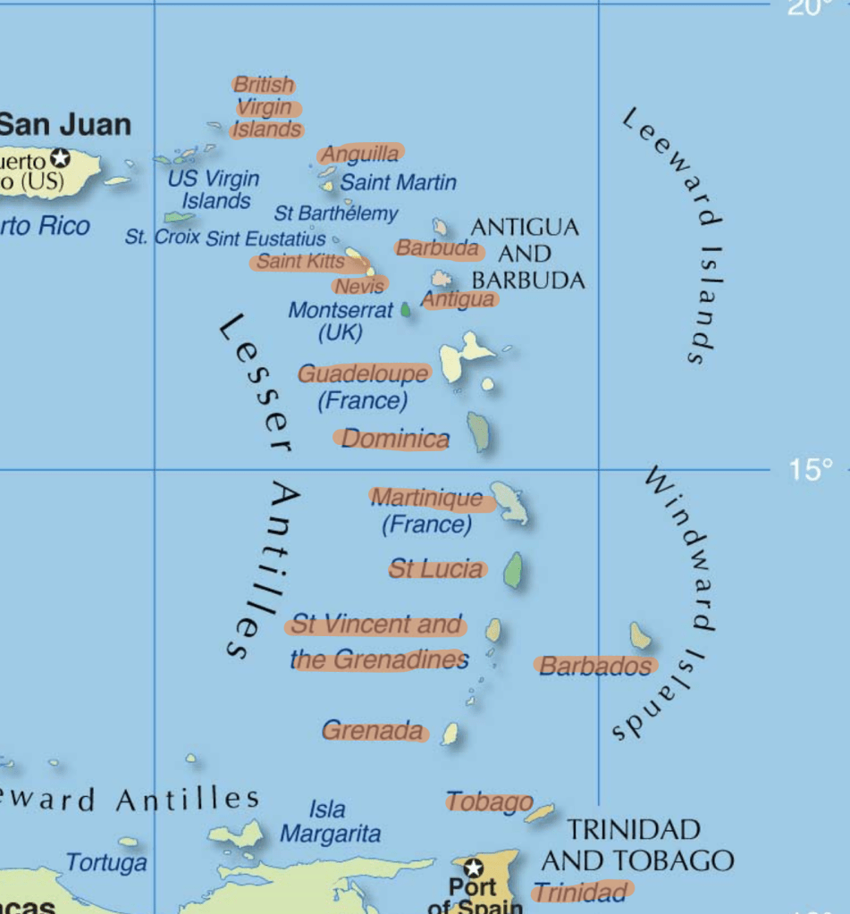 The table below shows the countries in which the various operators we used in the Caribbean are located. The countries are arranged from north to south.
