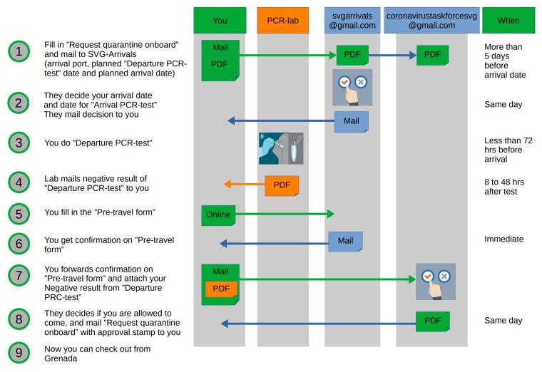 ”Are you in possession of a negative COVID-19 PCR test result from an accredited lab taken within 5 days of travel to Saint Vincent and the Grenadines?” - Vidarebefordra bekräftelse-mejlet till coronavirustaskforcesvg@gmail.com och bifoga svaret på ditt PCR-test.