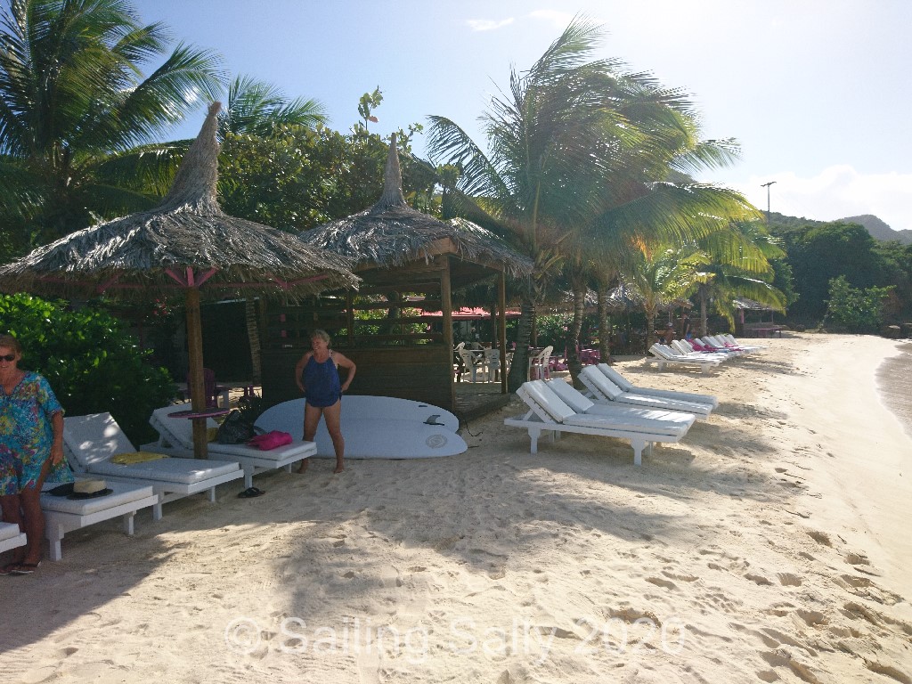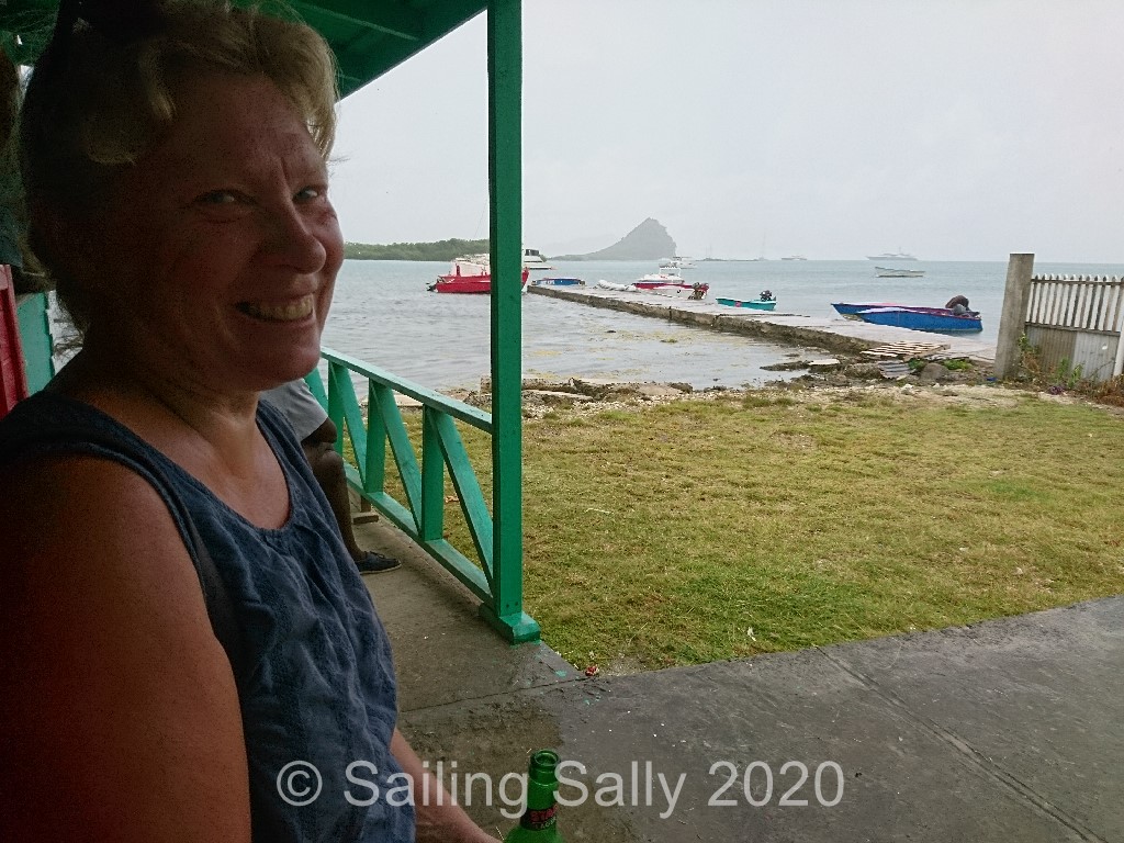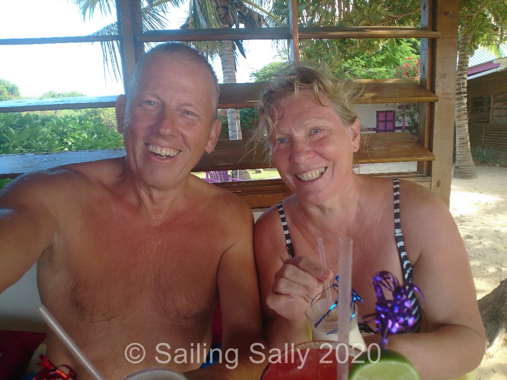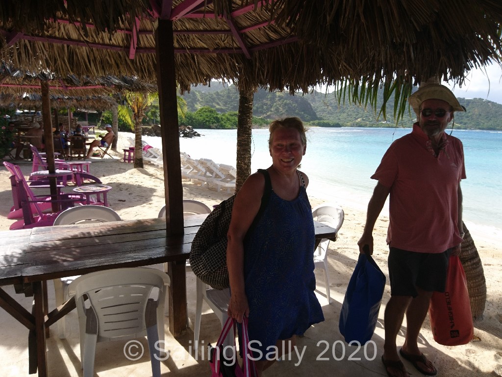Mirja and Håkan have been looking for a place to celebrate Christmas Eve and Sparrows Beach Club is open. Since there is no road down to Chatham Bay where we are, we move to the anchorage at Frigate Island off Ashton on Union Island.
