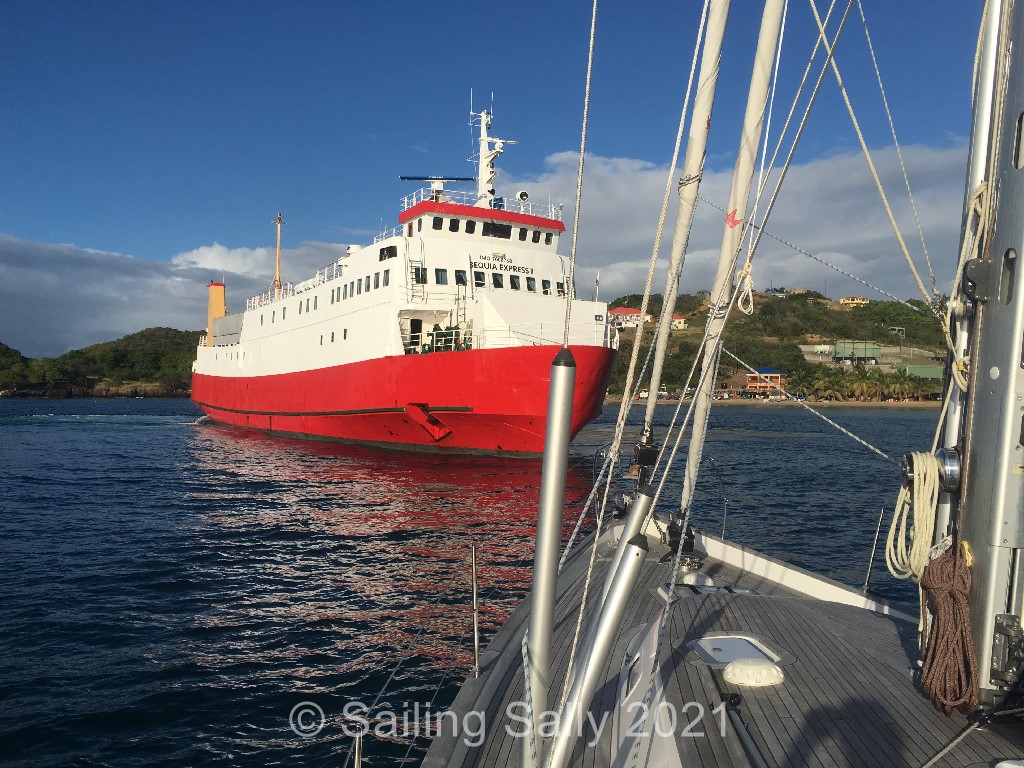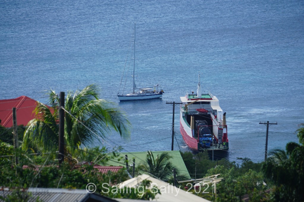 When we reach Saline Bay, swell from the northeast still reaches into the bay and we choose to anchor at the north end of the bay where the swell is least. This means that we get quite close to the ferry location and it is always fun to see how skillfully they dock with the old Norwegian ferries. The stern towards the jetty and an anchor in the bow. When the first ferry arrives, we notice that we have are very close to where they drop their anchor. I know that there will be ferries when it gets dark and then I do not want to be so close. We choose to move a bit so we get a little longer distance to the ferries.