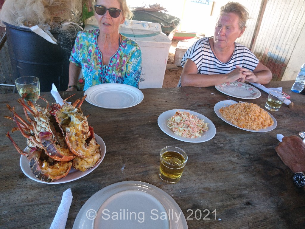 So it was finally time for grilled lobster on the beach in Saline Bay. Since last time we had looked for a place we wanted to be, but our host had other plans. We were placed between a closed bar and a shed with a view of the power plant in one direction and a better-used washing machine in the other direction. As so often here you can bring your own wine with the food, otherwise, he (unfortunately I do not remember the name of our host) had arranged with crockery and all accessories for the food. The food tasted very good, although the lobster was a little too chewy for my taste, maybe grilled a little too long. Anyway, it was a memorable evening and we had a nice time and at the end, the host sat down at our table and wondered if we could offer some wine, we gladly did. He said that while growing up he had a German woman who donated money to the family every month and he was very grateful for that.