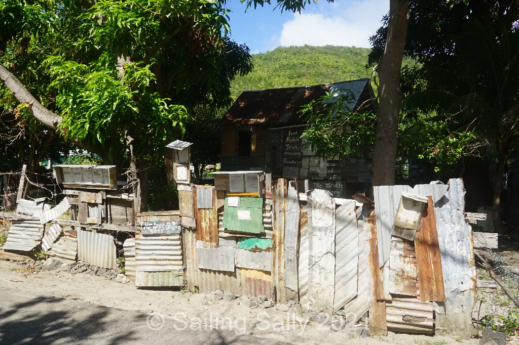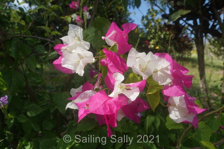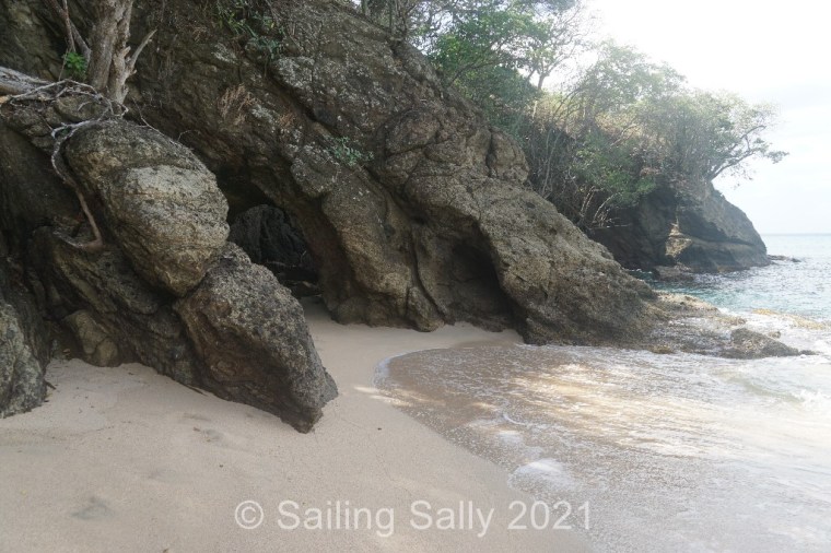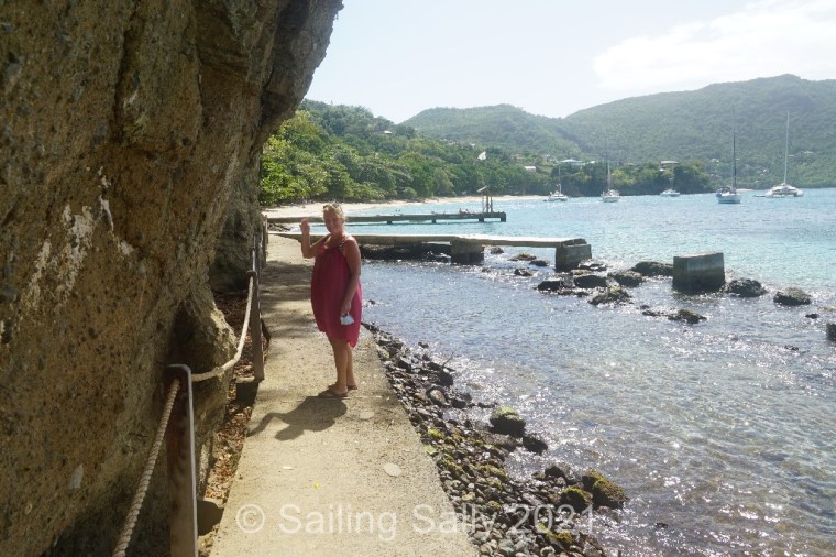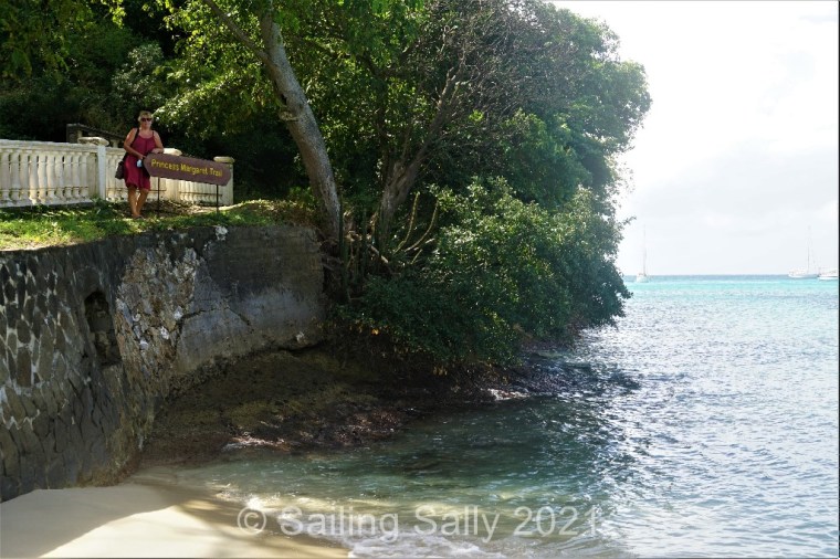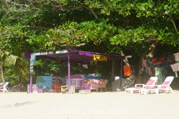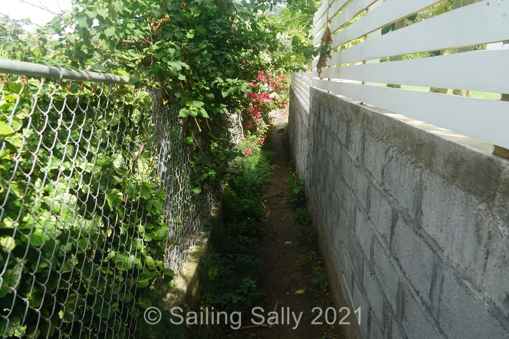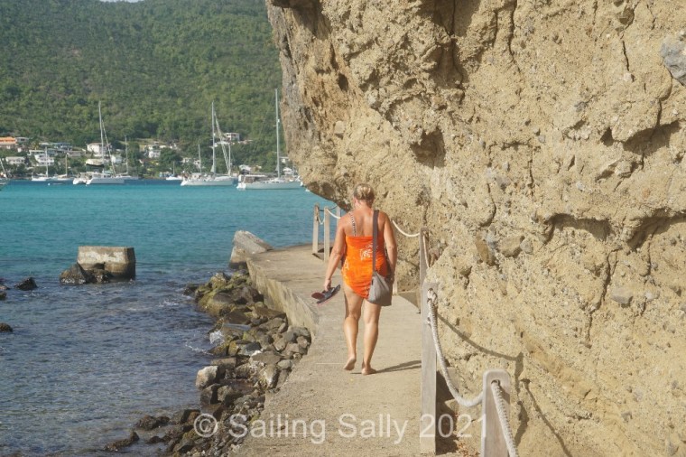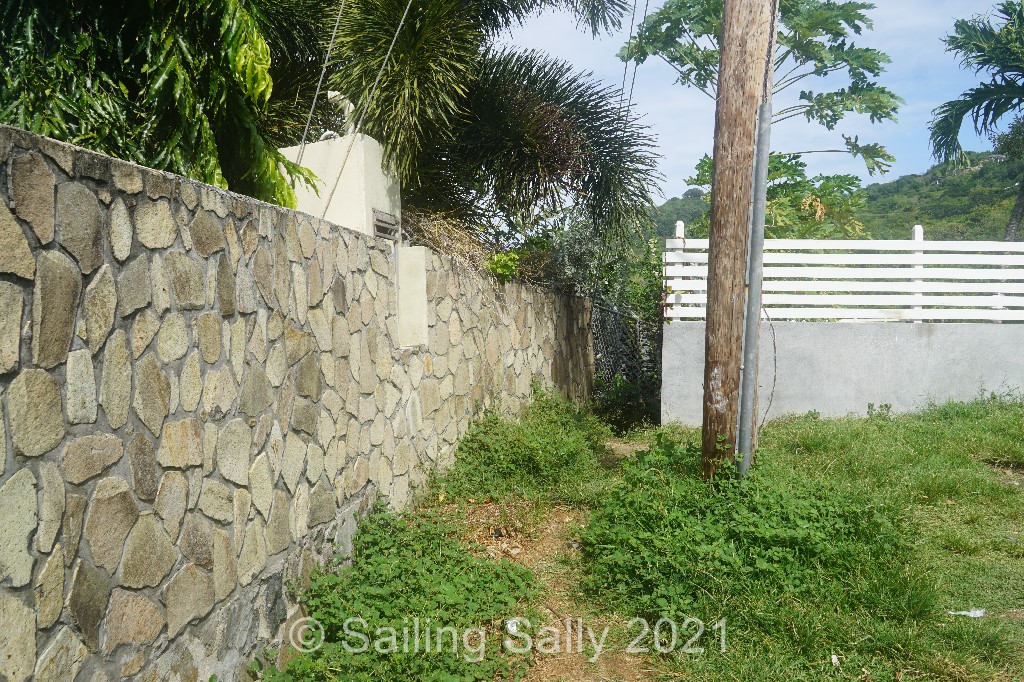 Our absolute favorite route to walk is the Princess Margaret Trail. We take the dinghy to a jetty at FigTree and Mac’s restaurant. Then we follow the water south down to Princess Margaret Beach and on to Low Bay. At the end of Princess Margaret Beach, there is a small path up the mountain through a narrow passage past a wall and out onto Lower Bay road. In Lower Bay, we usually have a good lunch at one of the cozy restaurants by the beach. This time, only the Keegans Beach bar was open. Our favorite Da Reef was unfortunately closed due to covid-19. On the way back you can stop at Jacks Beach Bar and have a beer or Pina Colada that cools well in the heat.