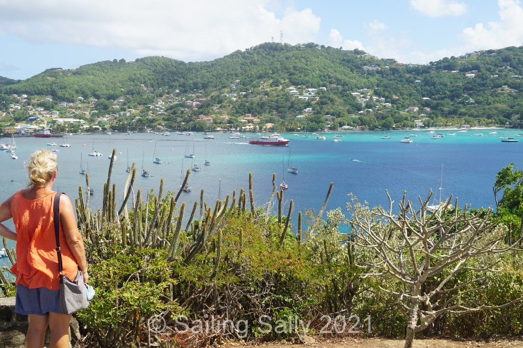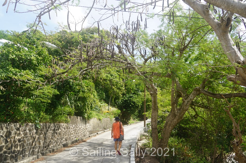 When we want to work our legs a little harder, we take a walk up Mount Pleasant. It is the mountain on the east side of Port Elizabeth. Again we put the dinghy at the jetty at Mac’s and FigTree and go up to Belmont Road which we follow a bit before we turn left up Mount Pleasant Road which goes all the way up to the top of the mountain where you look down to Friendship Bay.