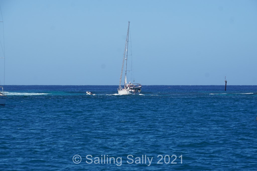 When we were about to leave the Blue Lagoon on St Vincent, there was hardly any swell at all and very few breaking waves on the reef. For safety’s sake, we have hired the guide, it is cheap insurance compared to the alternative of going aground. Flying Penguin will not sail with us to Mustique, they will return to Bequia.
