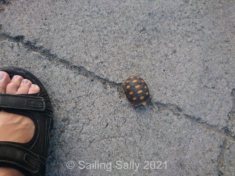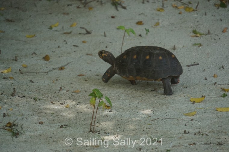 One day as we walked into the village we saw two land turtles, an adult, and a small cub. The little one walked in the middle of the road where cars sometimes drove. We moved it off the road, but it’s probably only a matter of time before it goes out there again. If land turtles are like those that live in the sea, then the chicks will probably have to fend for themselves.