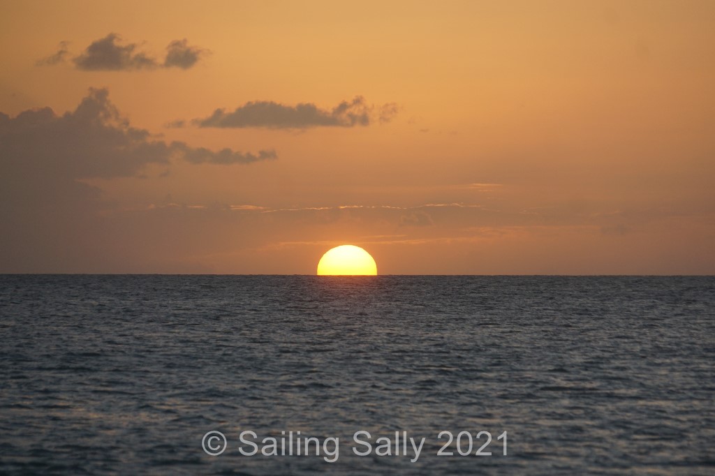 Vi blir kvar här några nätter tills vinden vrider tillbaka mot ost och nord ost så att vi vågar segla söderut med våra trasiga segel. Vi passar på att beställa grillad lobster på Shack-A-Kai igen, den här gången avnjuter vi den i båten och får uppleva fler fantastiska solnedgångar i havet vid Palmetto Point.