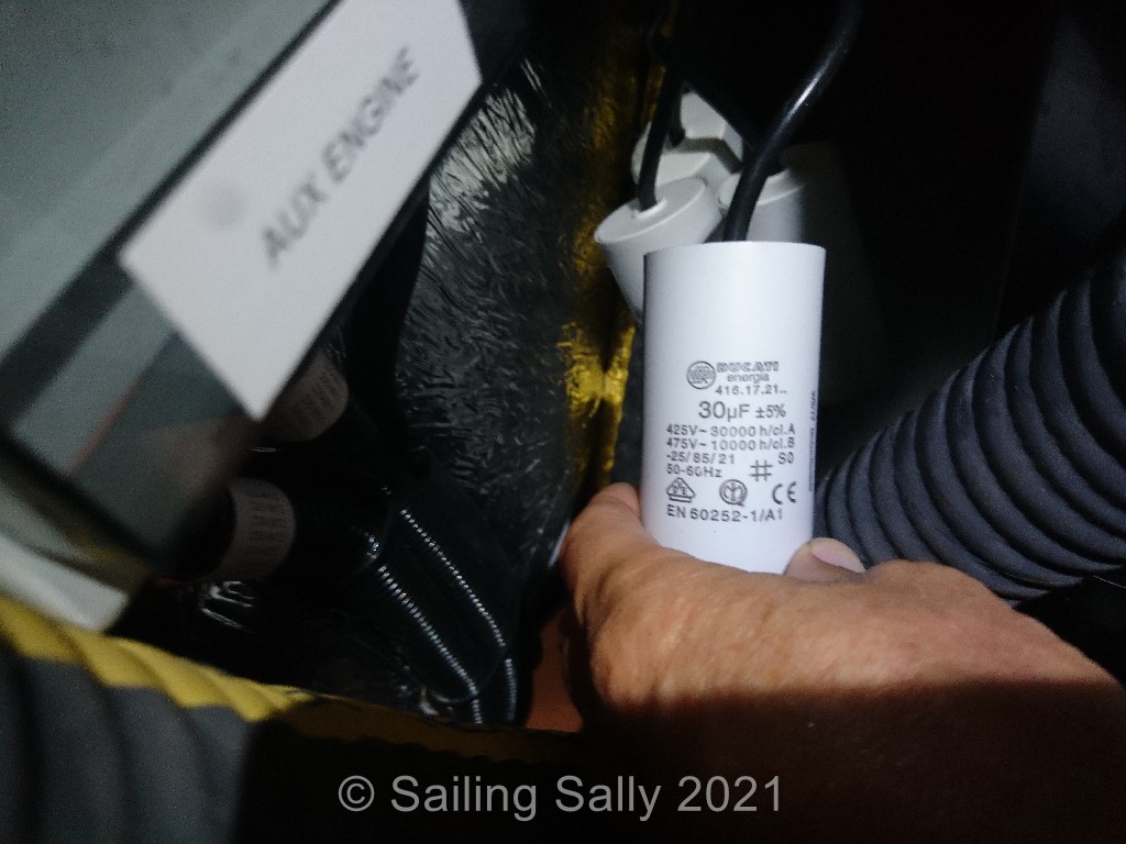 - Elverket har börjat krångla under tiden på Barbuda, för låg spänning ut från elverket gör att det stängs av. Jag misstänker att det är de spänningsstabiliserande kondensatorerna som har tappat kapacitet.