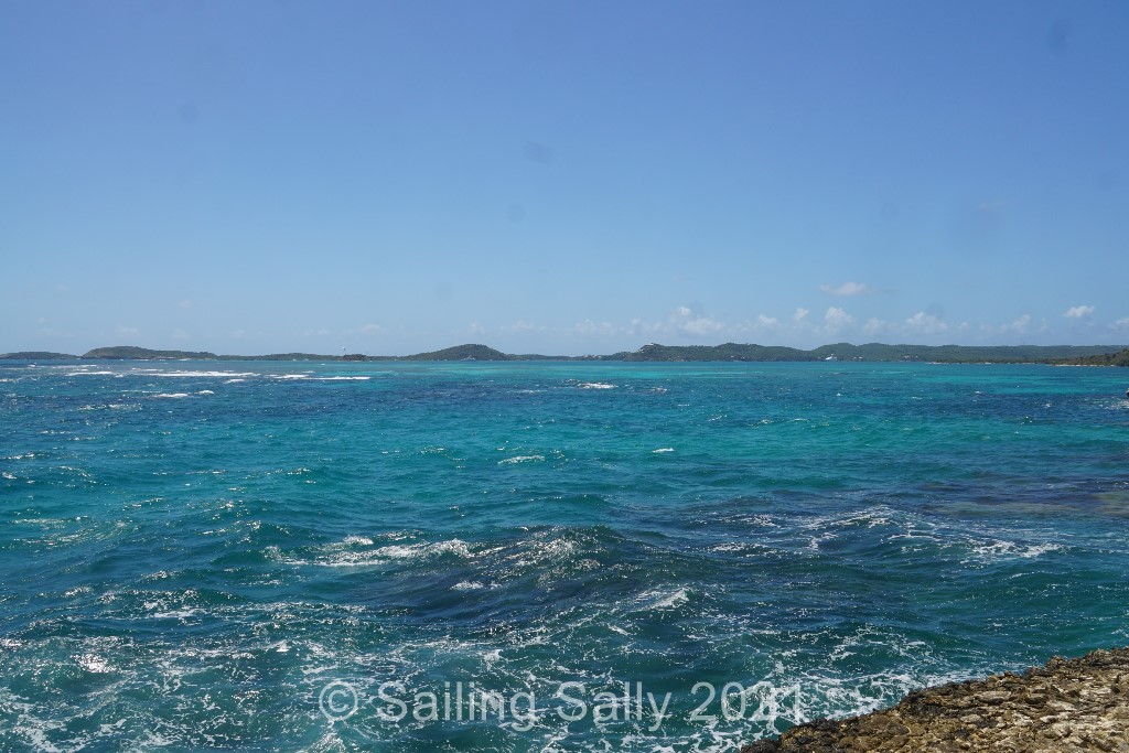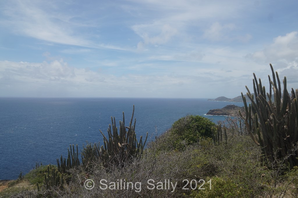 Väl uppe på Shieley Hights förstår jag varför Engelsmännen stationerade soldater här. Härifrån ser man hela södra kusten på Antigua och farvattnen långt utanför kusten. I klart väder ser man Montserrat 30 M (50 km) bort i sydväst.