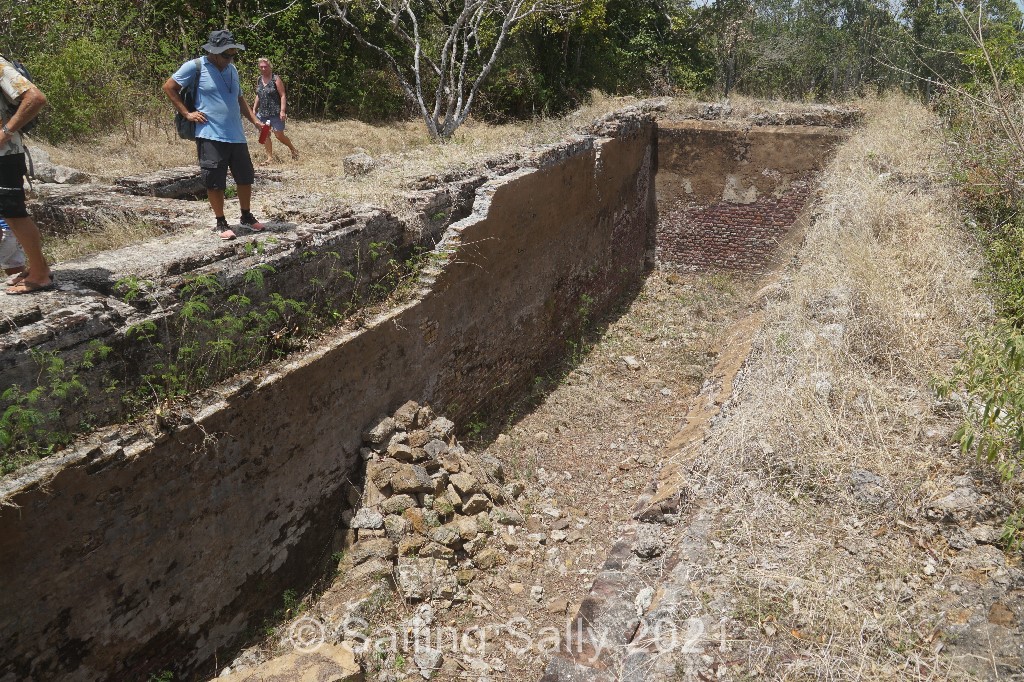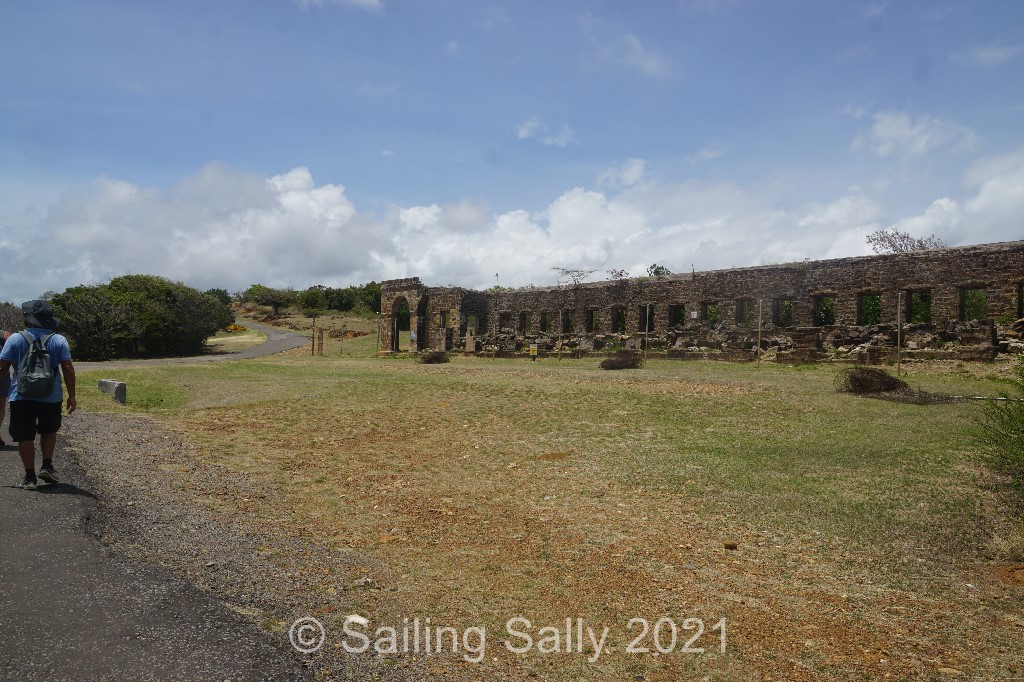 Vi passerar över en gammal gravplats för engelska soldater som avlidit under sin tjänstgöring i fortet på Shirley Hights. De överväxta gravstenarna är eroderade och oläsliga. Uppe på höjden finns det rester av militärförläggningen och en bassäng där de samlade regnvatten.