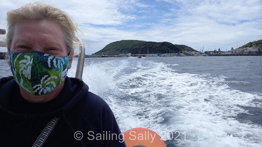 We arrived in Horta on the island of Faial early a Monday morning before the port office had opened. The night staff at the port asked us to anchor on the port and wait for the office to open at 8 o’clock for instructions on PCR testing. They want to know the boat’s name and how many people we are on board. We will wait to be picked up for transport to PCR testing. We are waiting and waiting…