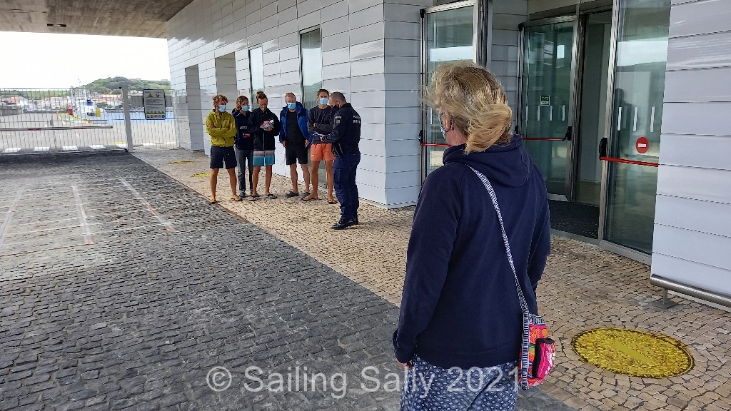 Around lunch, we are informed that our PCR test is negative and we are welcome ashore for check-in. We want to dock at the jetty and hurry in while there is still room at the check-in jetty. After visiting the port office, immigration, customs, and the port office again, we are cleared into Portugal and get a place outside some other boats on the inner pier. There are many boats here and we are located in 3-double lines after the quays. We got a famous boat neighbor, Peter Smith, onboard the sturdy aluminum boat Kiwi-Roa. Peter is known as the designer of the Rocna and Vulcan anchors.