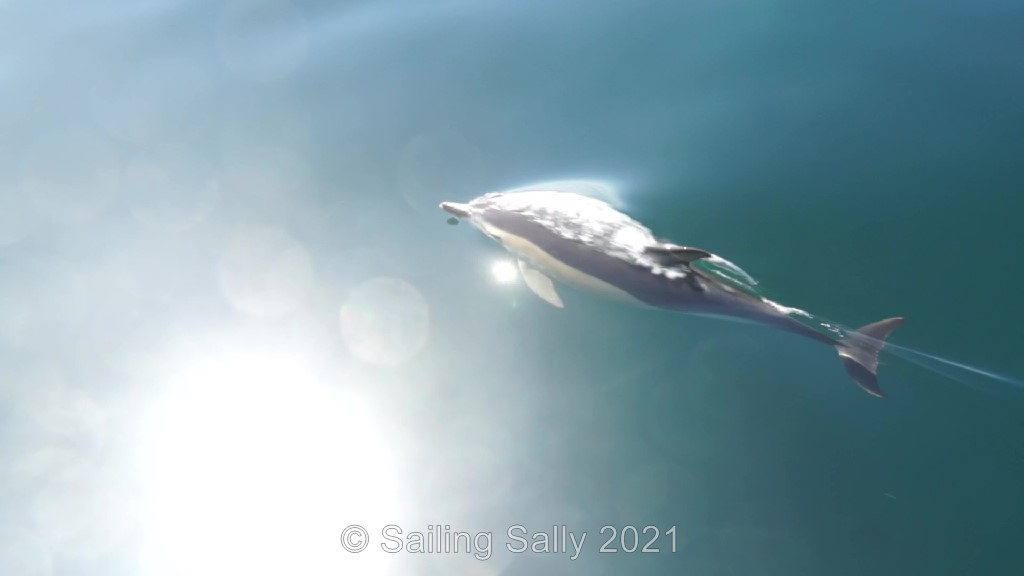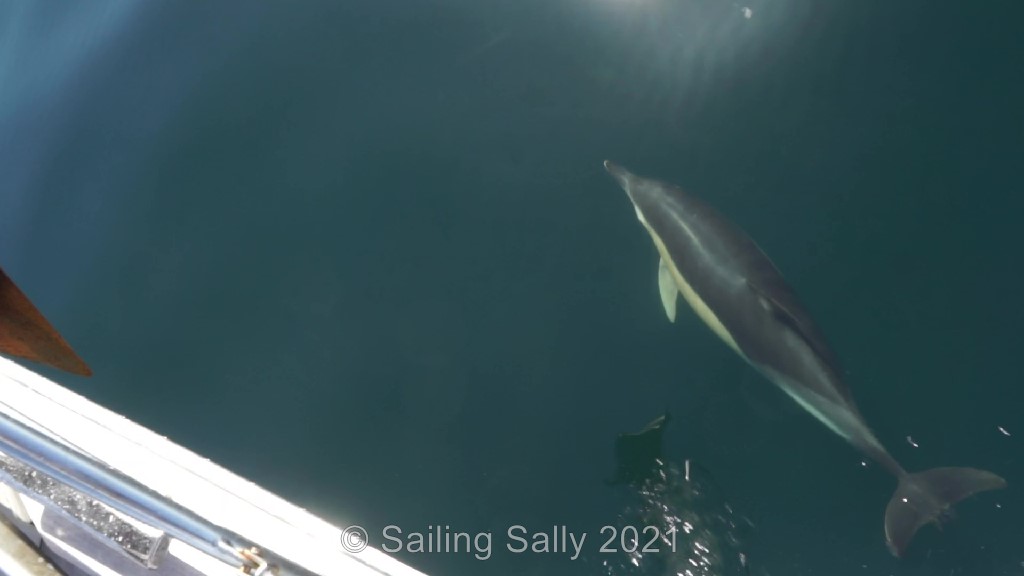 When we enter the Algarve coast we are visited by several dolphins playing around the boat and luckily no killer whales come and destroy our rudder.