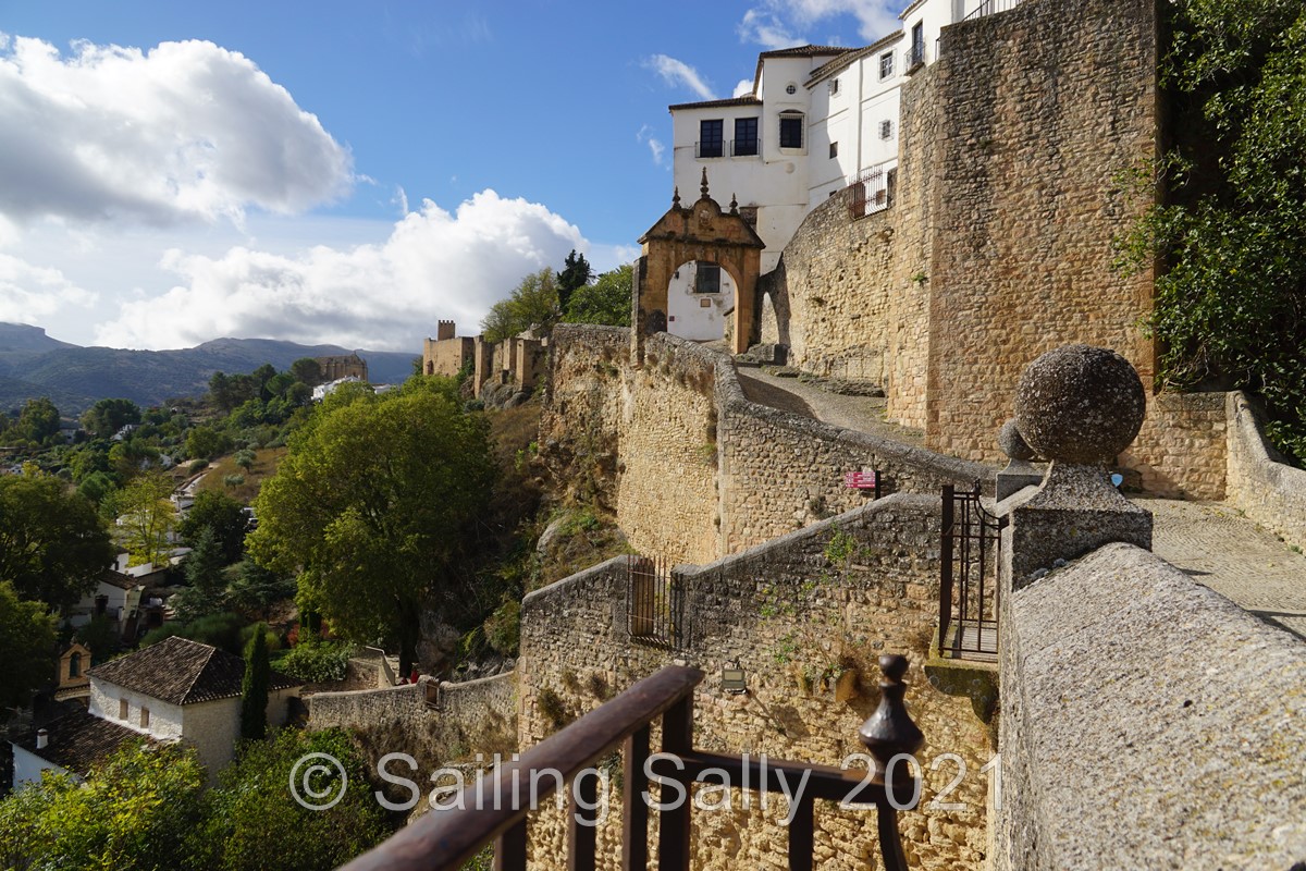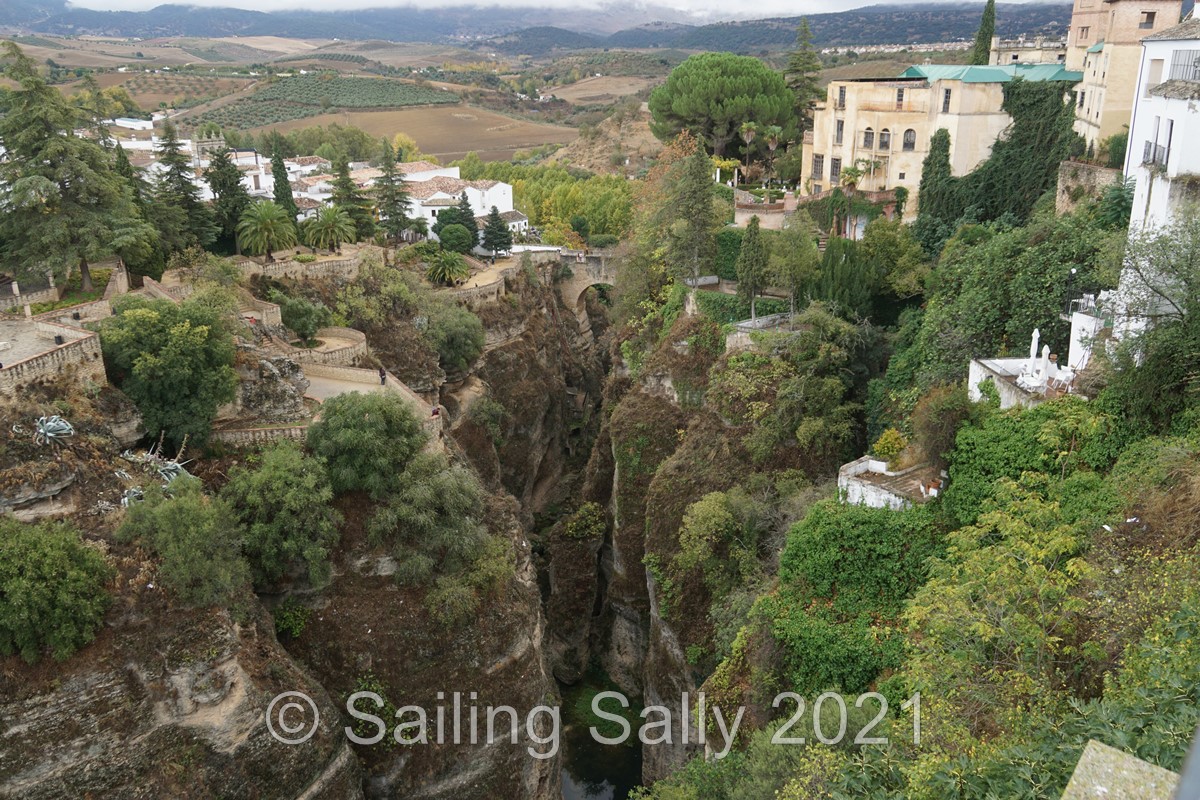 Den äldsta delen av Ronda har slingrande gränder och branta backar. Husen är byggda ända ut på kanten av det branta berget, så utsidan av de husen kan inte vara lätt att måla eller reparera. Det finns tre broar över ravinen, ju äldre ju lägre är de. Ravinen har bildats vid en jordbävning för 5 miljoner år sen och är unik för Andalusien.