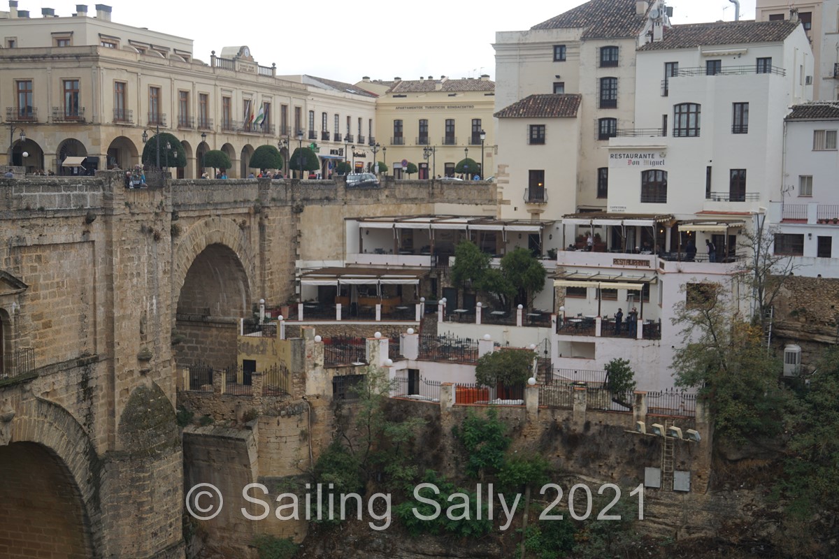 Den lägsta bron (The Roman Bridge) är äldst och från romartiden. Den 120 m höga bron (The New Bridge) leder in till den nya stadsdelen och byggdes under sista halvan av 1700-talet. Det är mäktigt att stå vid brofästet och titta ut över den djupa ravinen med sina tvärbranta väggar. Från den mellersta bron (The Old Bridge) har man en fantastisk vy mot ravinen, så en promenad dit är värd lite trötta ben.