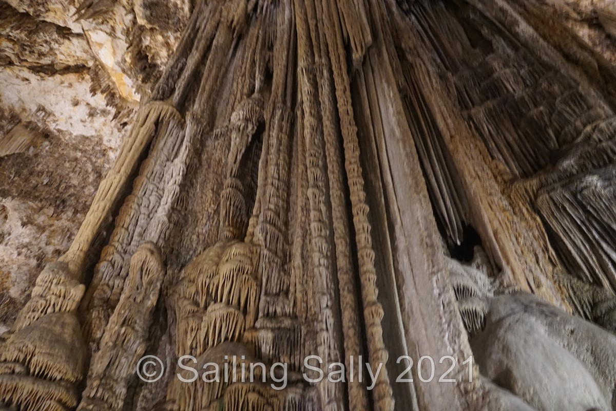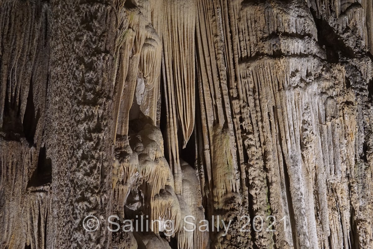 Det är bara en del av grottsystemet som är öppet för besökare. Grottorna är fyllda av flera olika sorters droppstensformationer, en formation är över 30 m hög, andra formationer verkar ha inspirerat de som ritade interiören i det utomjordiska rymdskeppet i den första Alien-filmen. Det finns stora droppstensformationer som har ramlat ned vid en stor jordbävning för flera hundra tusen år sen, man har även hittat grottmålningar gjorda av stenåldersmänniskor för över 40.000 år sen. De grottorna är inte öppna för turister så vi fick bara se avbildningar av målningarna.