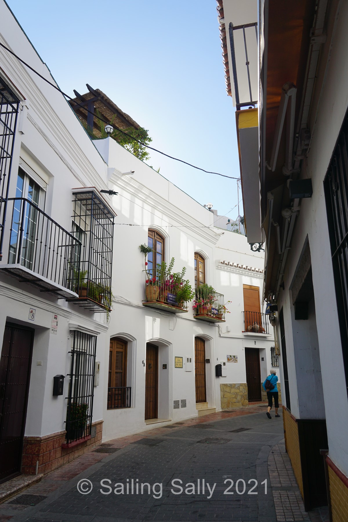 När vi pratade med Belinda och Peter på båten Chili bredvid oss framkom det att de också hade beställt en taxi för två personer till klockan tio. De hade angett samma bryggplats som vi och då hade taxibolaget antagit att det var samma beställning och bara skickat en bil. Bolaget hade inte brytt sig om att vi skulle till Nerja och de till Almunecar åt andra hållet längs kusten. När jag kontrollerade vilken plats vi låg på så visade det sig att jag sagt fel plats när jag beställde taxi, jag hade valt det nummer som fanns mellan oss och Chili, jag skulle ha valt det på andra sidan.