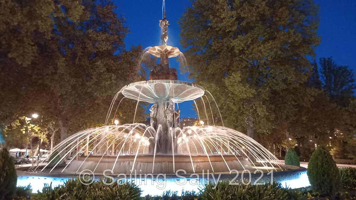 We walk in the center on the streets that have Christmas lights, we think that only the major shopping streets have it. This has been the case in other Spanish cities we have visited now before Christmas and it seems to be like this here as well. They have many nicely lit fountains and we manage to take reasonably good photos of them with our mobiles, even though it is dark.