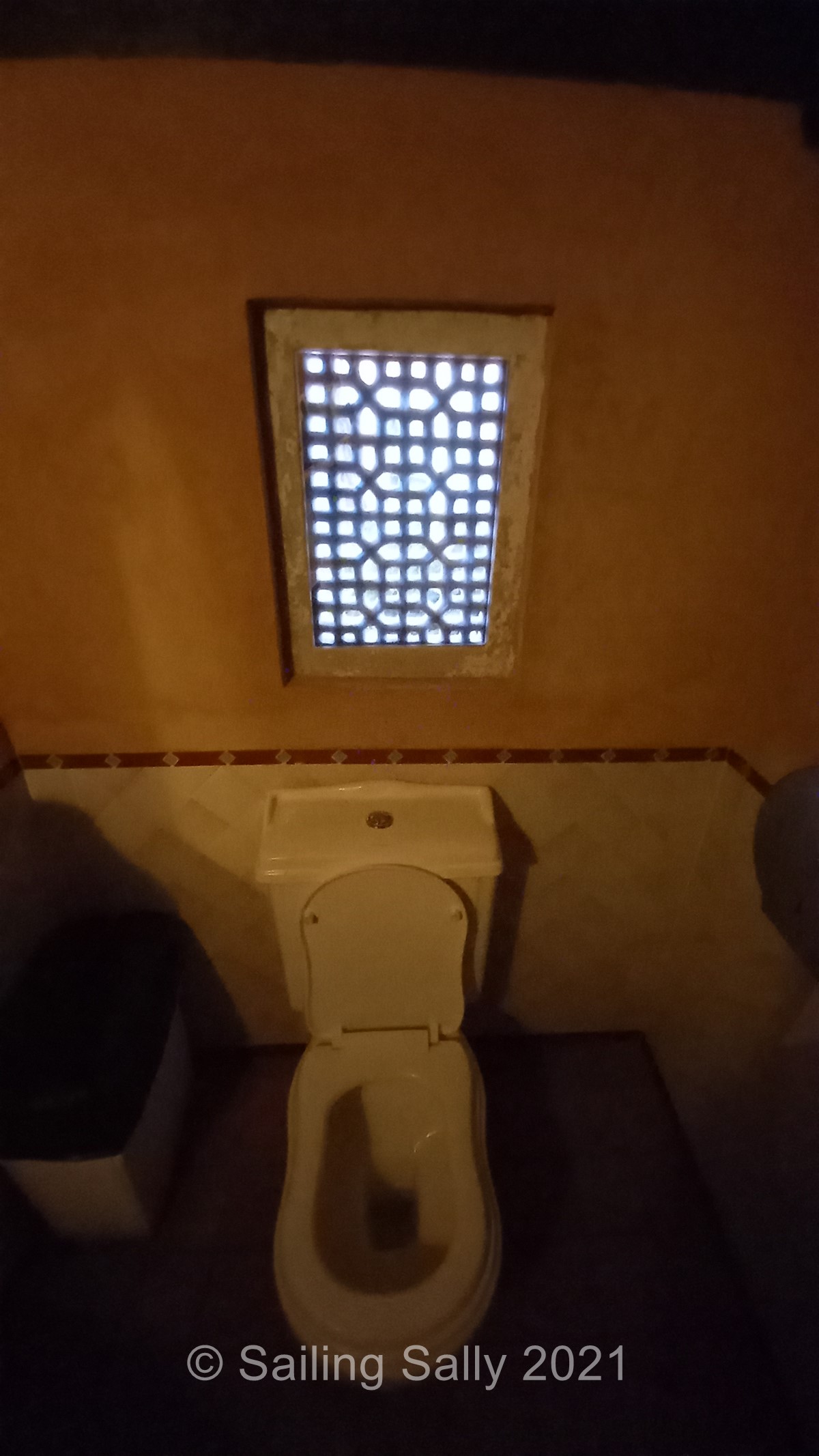 They have a nice but cold toilet with a window just above the toilet. The window faces the place where people are waiting for it to become vacant. This is how you sit down and pee, even if you are a man!