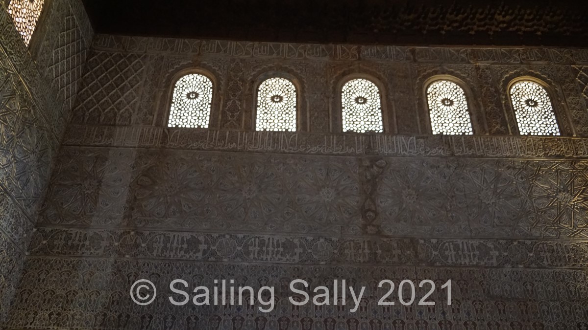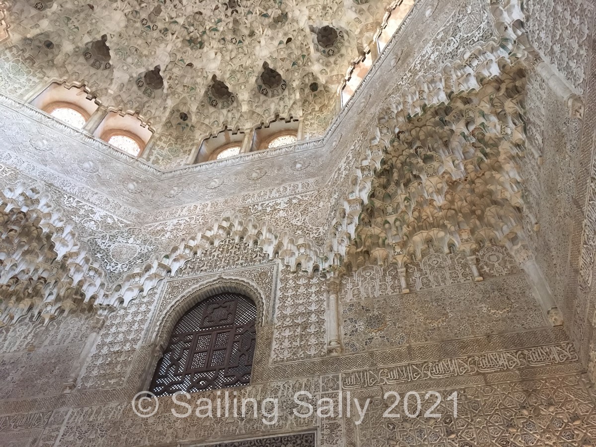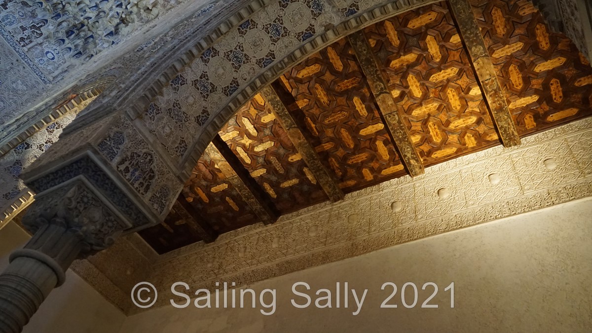 The floors have intricate geometric patterns in the tiles and the ceilings have fantastic three-dimensional patterns made in the same way as the walls. The windows have ornate grilles and the sturdy wooden doors are full of carved patterns. It is unbelievable what work was required, but it took almost 200 years to build the Alhambra.